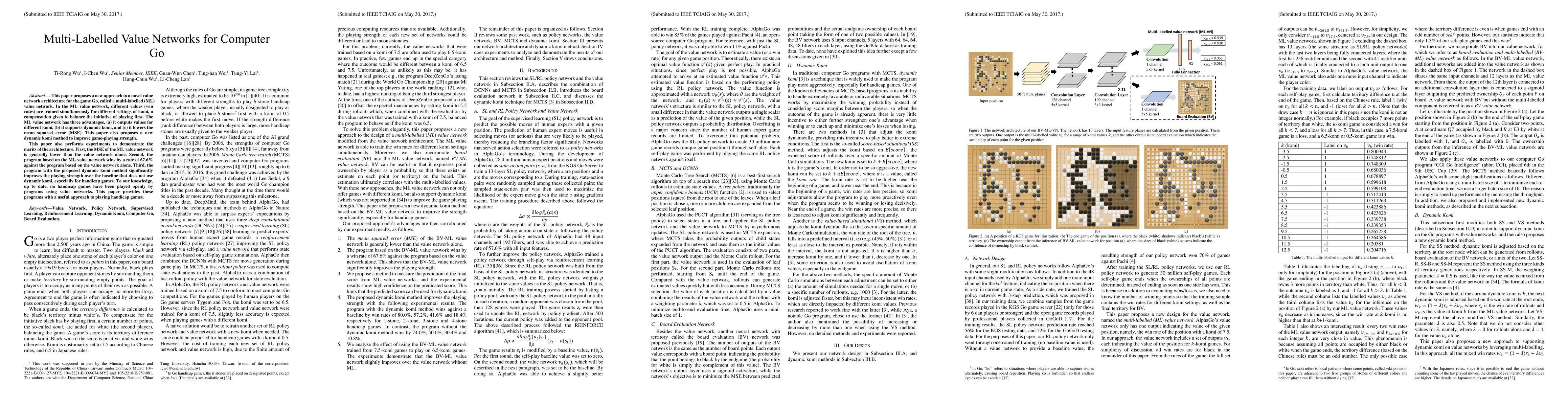 This paper proposes a new approach to a novel value network architecture for the game Go, called a multi-labelled (ML) value network. In the ML value network, different values (win rates) are trained simultaneously for different settings of komi, a compensation given to balance the initiative of playing first. The ML value network has three advantages, (a) it outputs values for different komi, (b) it supports dynamic komi, and (c) it lowers the mean squared error (MSE). This paper also proposes a new dynamic komi method to improve game-playing strength. This paper also performs experiments to demonstrate the merits of the architecture. First, the MSE of the ML value network is generally lower than the value network alone. Second, the program based on the ML value network wins by a rate of 67.6% against the program based on the value network alone. Third, the program with the proposed dynamic komi method significantly improves the playing strength over the baseline that does not use dynamic komi, especially for handicap games. To our knowledge, up to date, no handicap games have been played openly by programs using value networks. This paper provides these programs with a useful approach to playing handicap games.
