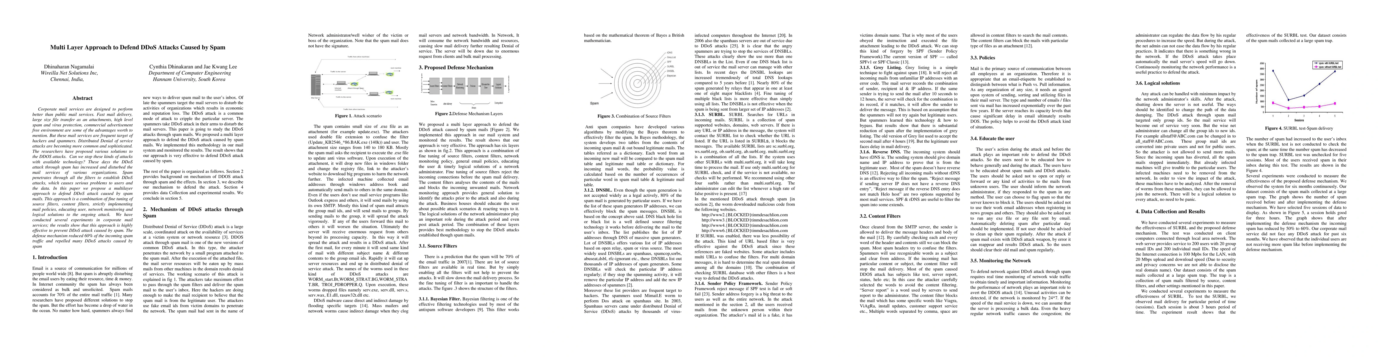 This paper proposes a multi-layer defense strategy to combat DDoS attacks originating from spam emails, combining source and content filtering, strict mail policies, user education, network monitoring, and logical solutions. Experiments show a 60% reduction in spam traffic and effective prevention of DDoS attacks.