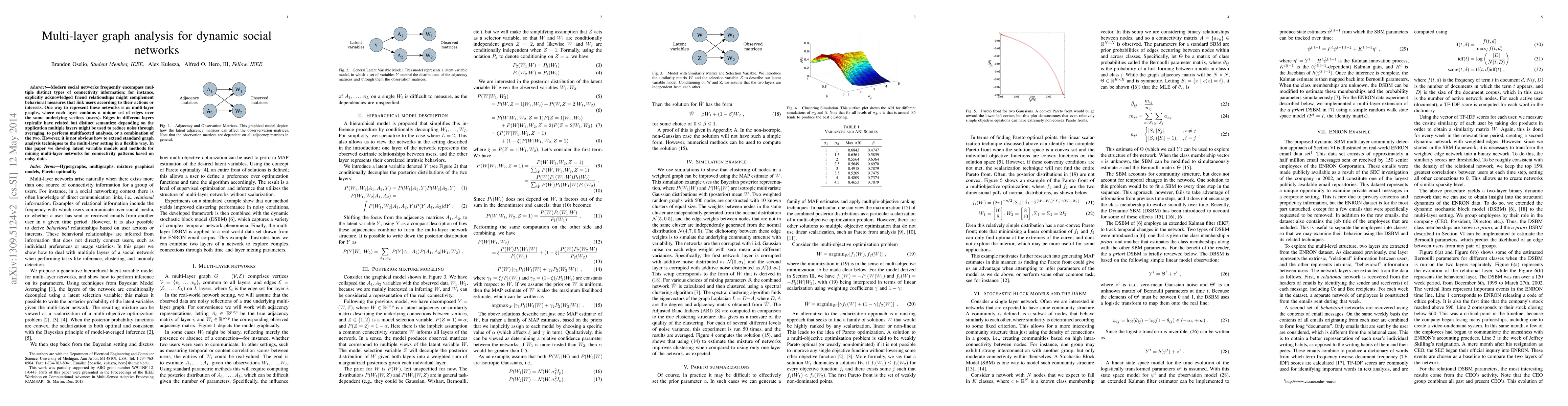 This paper develops latent variable models to analyze multi-layer social networks, which can represent different types of connectivity information in a flexible way. It aims to mine noisy data for patterns and connections in these complex network structures.