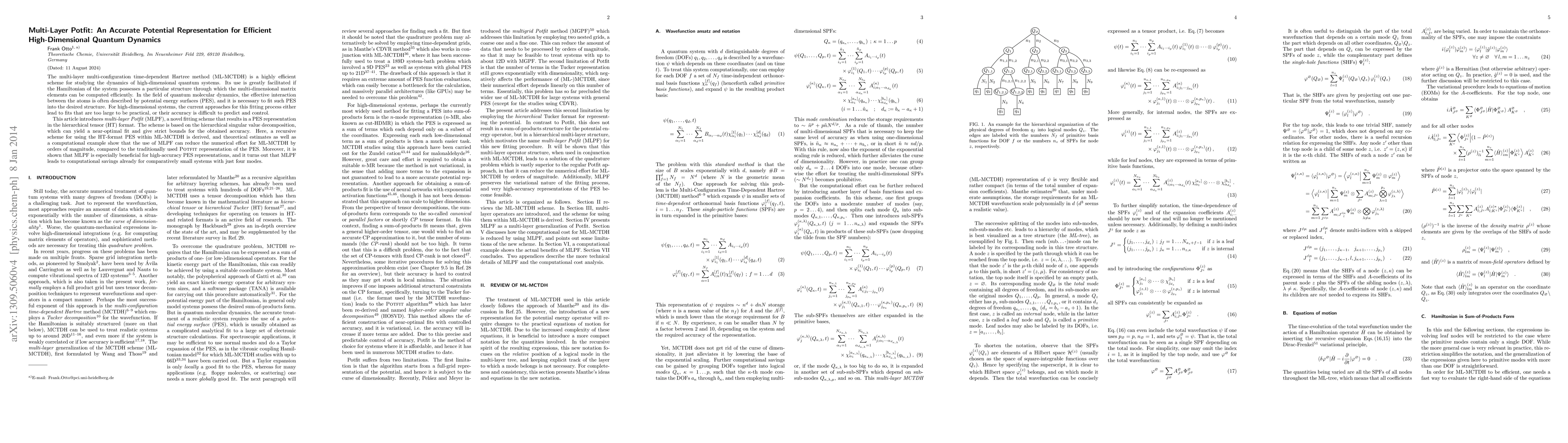 This paper introduces multi-layer Potfit (MLPF), a novel fitting scheme for potential energy surfaces (PES) in high-dimensional quantum systems, which utilizes hierarchical tensor format to achieve near-optimal accuracy and significant computational efficiency. MLPF significantly reduces numerical effort in multi-layer multi-configuration time-dependent Hartree method (ML-MCTDH) compared to traditional methods.