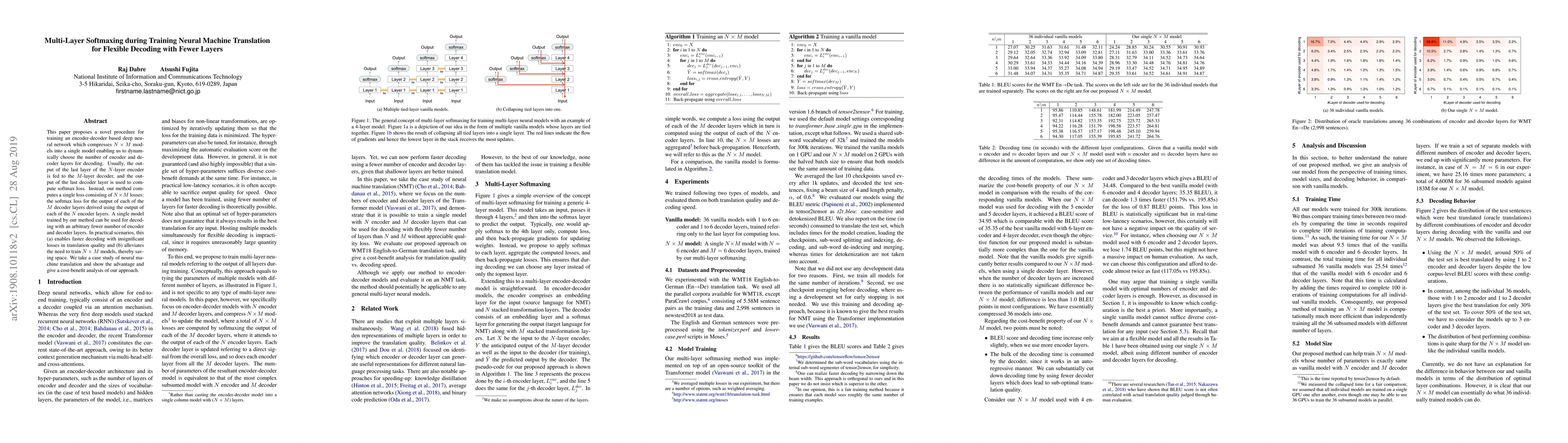 This paper proposes a novel procedure for training an encoder-decoder based deep neural network which compresses NxM models into a single model enabling us to dynamically choose the number of encoder and decoder layers for decoding. Usually, the output of the last layer of the N-layer encoder is fed to the M-layer decoder, and the output of the last decoder layer is used to compute softmax loss. Instead, our method computes a single loss consisting of NxM losses: the softmax loss for the output of each of the M decoder layers derived using the output of each of the N encoder layers. A single model trained by our method can be used for decoding with an arbitrary fewer number of encoder and decoder layers. In practical scenarios, this (a) enables faster decoding with insignificant losses in translation quality and (b) alleviates the need to train NxM models, thereby saving space. We take a case study of neural machine translation and show the advantage and give a cost-benefit analysis of our approach.