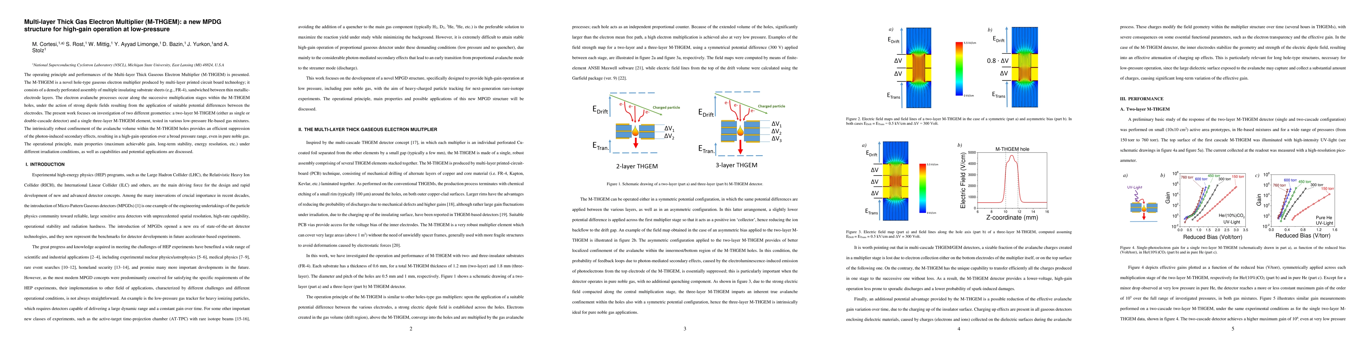 The Multi-layer Thick Gas Electron Multiplier (M-THGEM) is a novel electron multiplier utilizing multi-layer printed circuit technology for high-gain operation in low-pressure environments. It demonstrates high-gain performance and stability across various gas mixtures, making it a promising device for diverse applications.