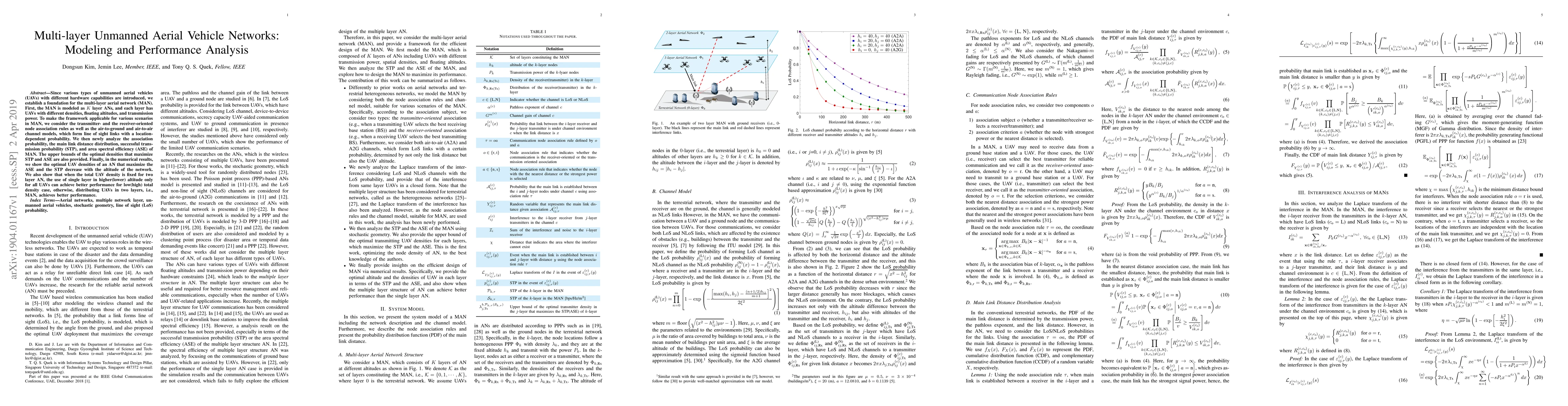 This research paper models multi-layer unmanned aerial vehicle networks to analyze performance and optimal densities for successful transmission and area spectral efficiency. It finds that using a single layer in higher altitude achieves better performance for low total density cases.