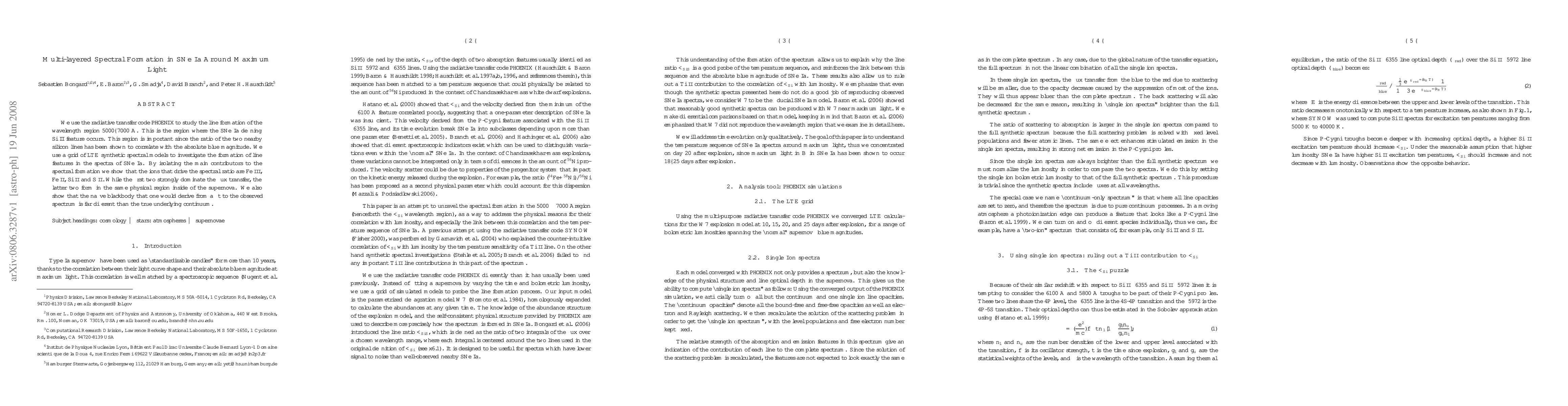 We use the radiative transfer code PHOENIX to study the line formation of the wavelength region 5000-7000 Angstroms. This is the region where the SNe Ia defining Si II feature occurs. This region is important since the ratio of the two nearby silicon lines has been shown to correlate with the absolute blue magnitude. We use a grid of LTE synthetic spectral models to investigate the formation of line features in the spectra of SNe Ia. By isolating the main contributors to the spectral formation we show that the ions that drive the spectral ratio are Fe III, Fe II, Si II, and S II. While the first two strongly dominate the flux transfer, the latter two form in the same physical region inside of the supernova. We also show that the naive blackbody that one would derive from a fit to the observed spectrum is far different than the true underlying continuum.