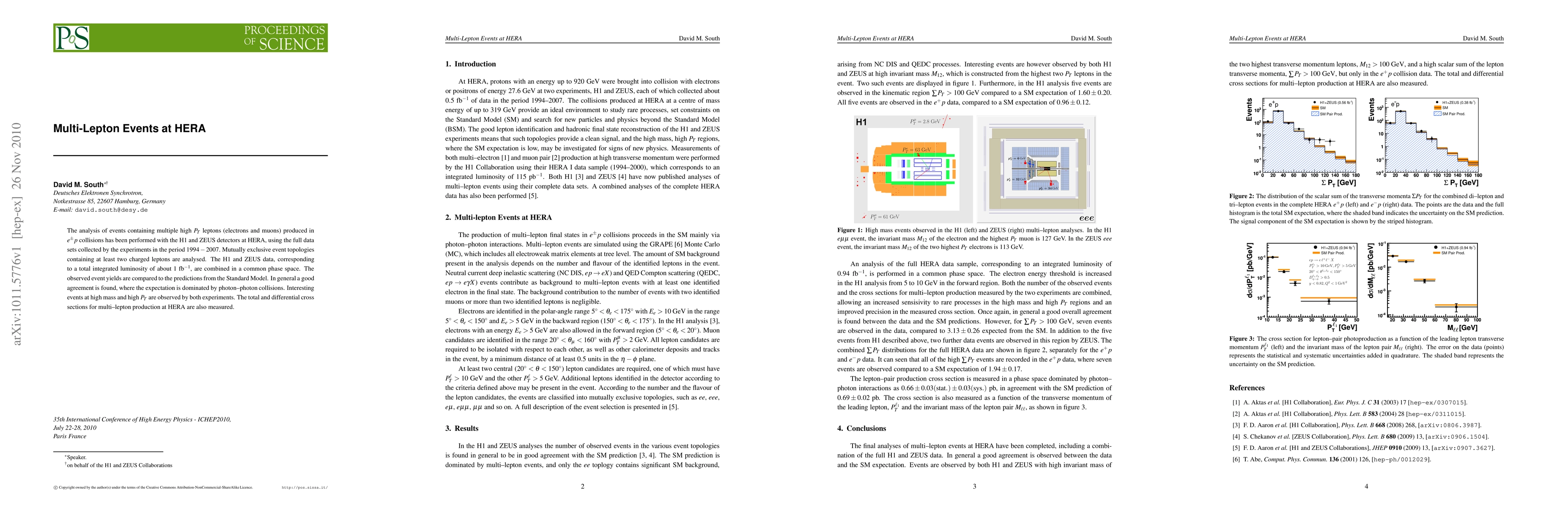 This paper analyzes multi-lepton events from ep collisions at HERA using data from the H1 and ZEUS detectors, finding good agreement with Standard Model predictions dominated by photon-photon interactions, with notable high-mass events observed. Cross sections for multi-lepton production are measured.