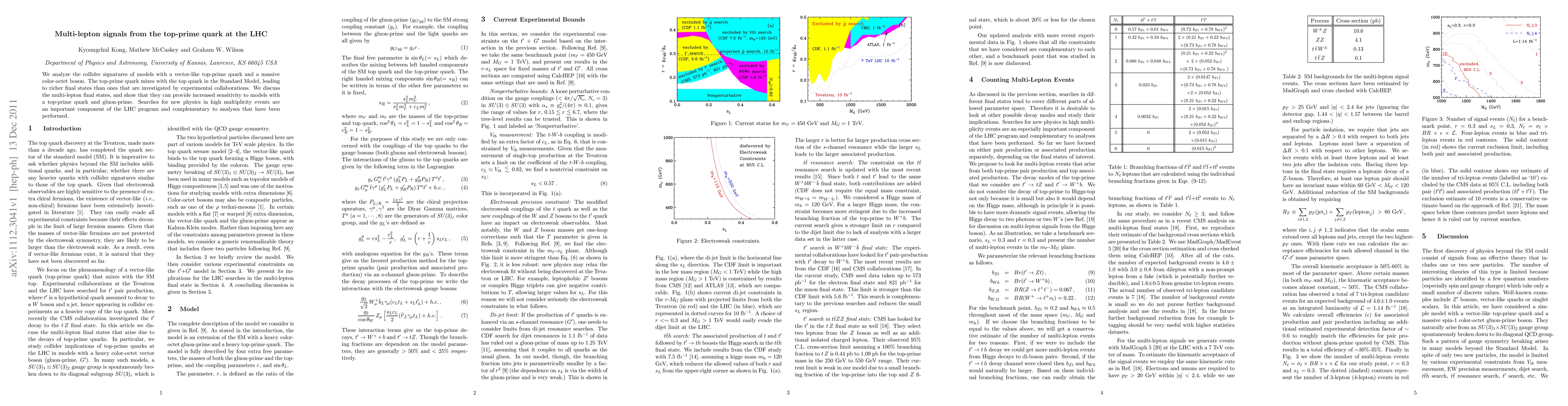We analyze the collider signatures of models with a vector-like top-prime quark and a massive color-octet boson. The top-prime quark mixes with the top quark in the Standard Model, leading to richer final states than ones that are investigated by experimental collaborations. We discuss the multi-lepton final states, and show that they can provide increased sensitivity to models with a top-prime quark and gluon-prime. Searches for new physics in high multiplicity events are an important component of the LHC program and complementary to analyses that have been performed.