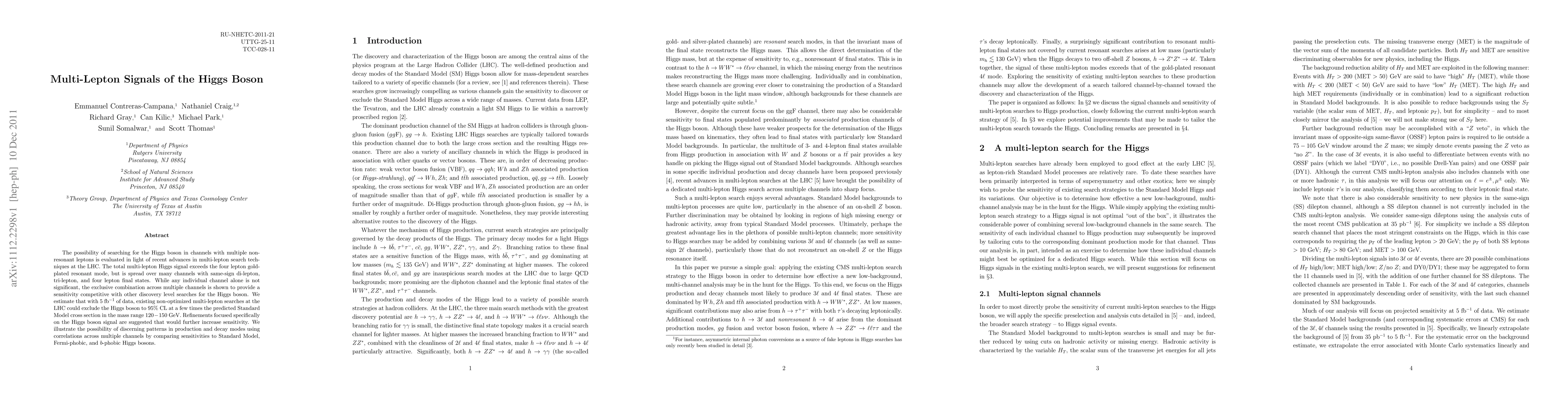 The possibility of searching for the Higgs boson in channels with multiple non-resonant leptons is evaluated in light of recent advances in multi-lepton search techniques at the LHC. The total multi-lepton Higgs signal exceeds the four lepton gold-plated resonant mode, but is spread over many channels with same-sign di-lepton, tri-lepton, and four lepton final states. While any individual channel alone is not significant, the exclusive combination across multiple channels is shown to provide a sensitivity competitive with other discovery level searches for the Higgs boson. We estimate that with 5 inverse femtobarn of data, existing non-optimized multi-lepton searches at the LHC could exclude the Higgs boson to 95% CL at a few times the predicted Standard Model cross section in the mass range 120-150 GeV. Refinements focused specifically on the Higgs boson signal are suggested that would further increase sensitivity. We illustrate the possibility of discerning patterns in production and decay modes using correlations across multiple channels by comparing sensitivities to Standard Model, Fermi-phobic, and b-phobic Higgs bosons.