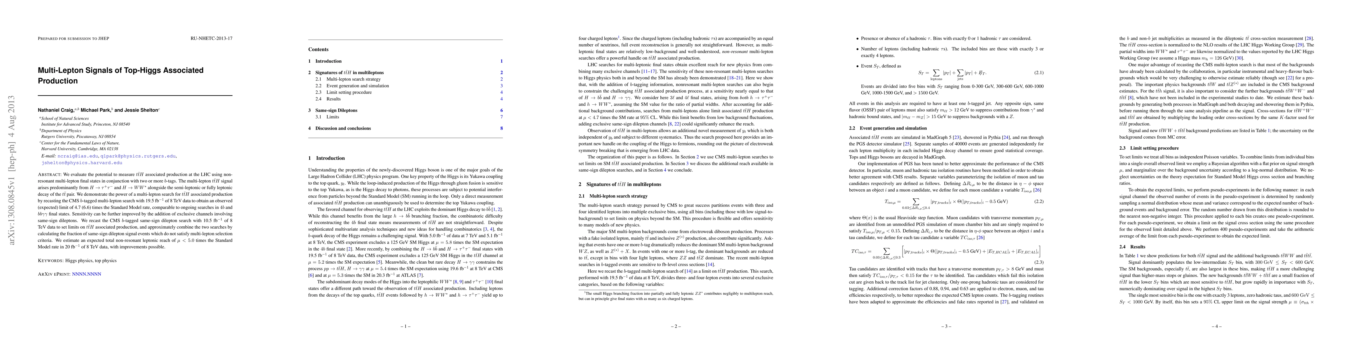 This paper evaluates the potential for detecting top-Higgs associated production at the LHC through non-resonant multi-lepton final states, achieving comparable limits to other searches. It demonstrates improved sensitivity by combining multi-lepton and same-sign dilepton channels, projecting an enhanced reach in future data collections.