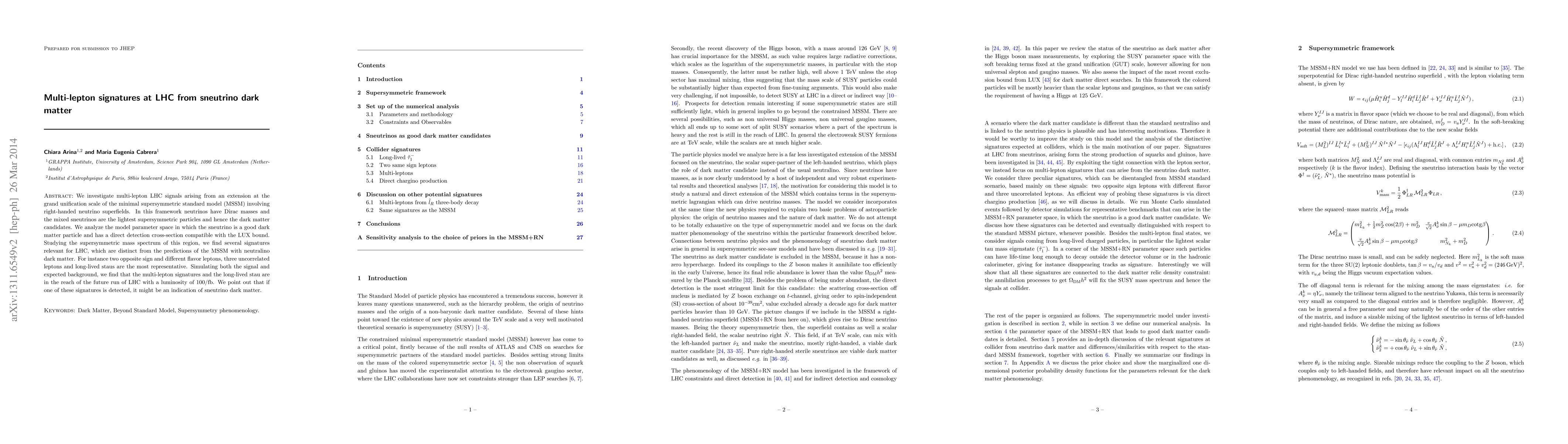 This paper explores multi-lepton signals at the LHC from an extended MSSM model featuring right-handed neutrinos, where mixed sneutrinos serve as dark matter candidates. It finds distinct LHC signatures, including long-lived staus and multi-lepton events, potentially detectable in future LHC runs, suggesting these could indicate sneutrino dark matter.