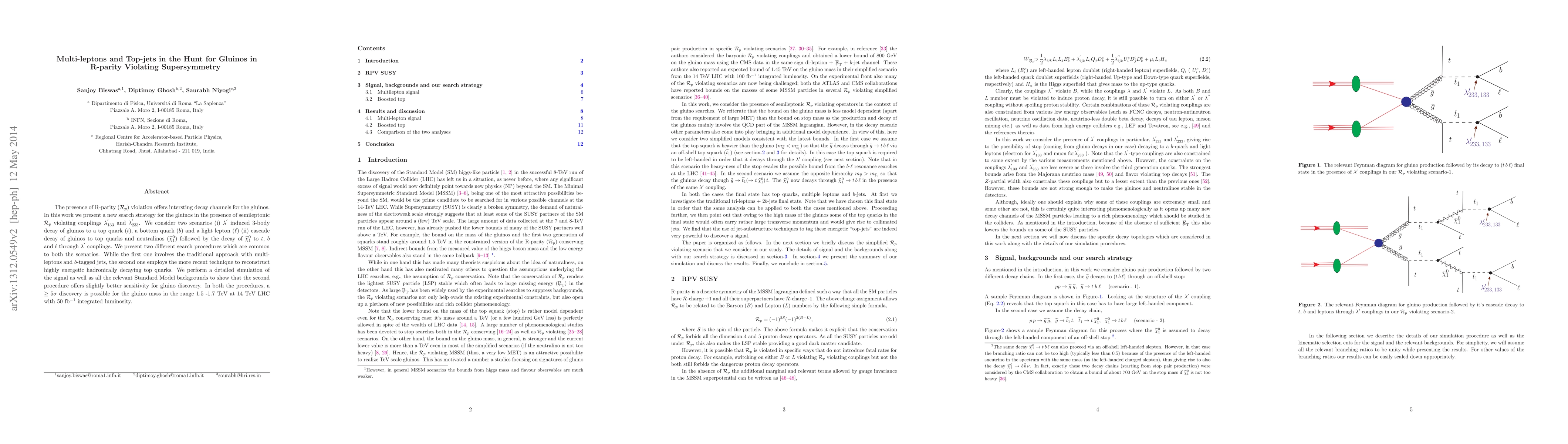 The presence of R-parity ($\mathcal{R}_p$) violation offers intersting decay channels for the gluinos. In this work we present a new search strategy for the gluinos in the presence of semileptonic $\mathcal{R}_p$ violating couplings $\lambda^{'}_{133}$ and $\lambda^{'}_{233}$. We consider two scenarios (i) $\lambda^{'}$ induced 3-body decay of gluinos to a top quark ($t$), a bottom quark ($b$) and a light lepton ($\ell$) (ii) cascade decay of gluinos to top quarks and neutralinos ($\widetilde{\chi}_1^0$) followed by the decay of $\widetilde{\chi}_1^0$ to $t$, $b$ and $\ell$ through $\lambda^{'}$ couplings. We present two different search procedures which are common to both the scenarios. While the first one involves the traditional approach with multi-leptons and $b$-tagged jets, the second one employs the more recent technique to reconstruct highly energetic hadronically decaying top quarks. We perform a detailed simulation of the signal as well as all the relevant Standard Model backgrounds to show that the second procedure offers slightly better sensitivity for gluino discovery. In both the procedures, a $\geq$ 5$\sigma$ discovery is possible for the gluino mass in the range 1.5 -1.7 TeV at 14 TeV LHC with 50 fb$^{-1}$ integrated luminosity.