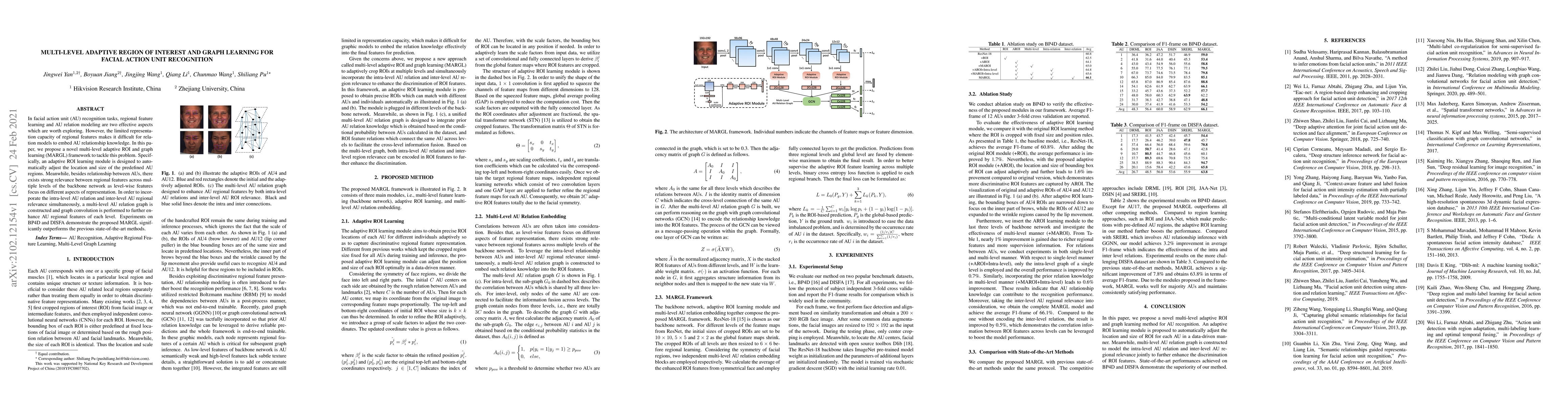 This paper proposes a MARGL framework for facial action unit recognition, featuring adaptive ROI learning and multi-level graph convolution to enhance regional feature representation and model AU relationships effectively. Experimental results show MARGL outperforms existing methods on BP4D and DISFA datasets.