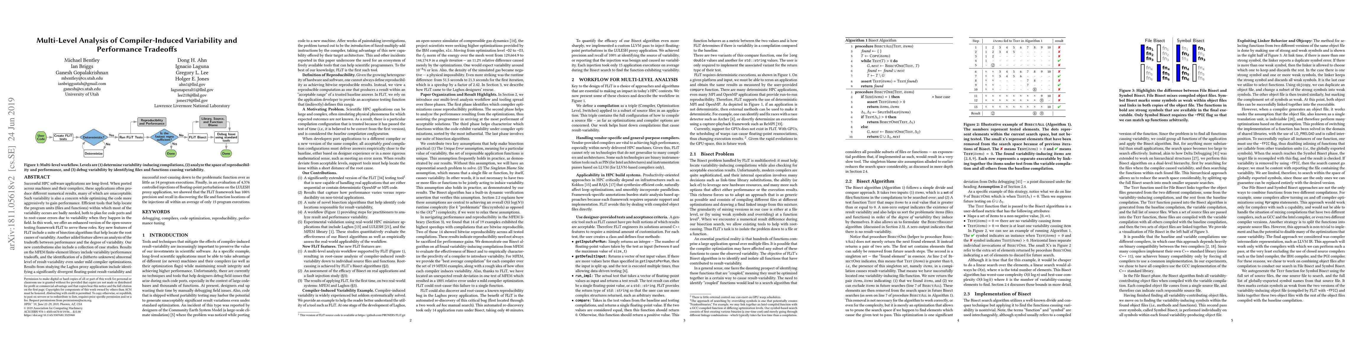 This paper presents an enhanced version of the FLiT framework to analyze compiler-induced variability and performance tradeoffs in HPC applications. It introduces new bisection algorithms to locate variability sources and evaluates the framework's effectiveness through case studies on MFEM, Laghos, and LULESH, demonstrating high precision and recall in identifying problematic code units.