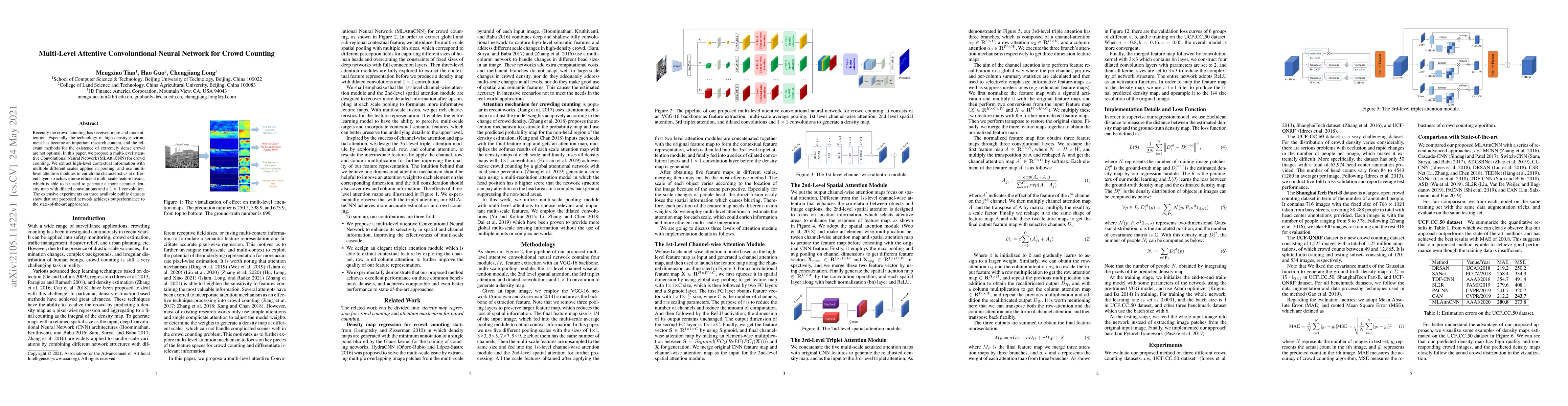 This paper proposes a multi-level attentive Convolutional Neural Network (MLAttnCNN) for crowd counting, utilizing multi-scale pooling and attention modules to enhance feature fusion and generate accurate density maps. Experimental results demonstrate superior performance compared to state-of-the-art methods on three public datasets.