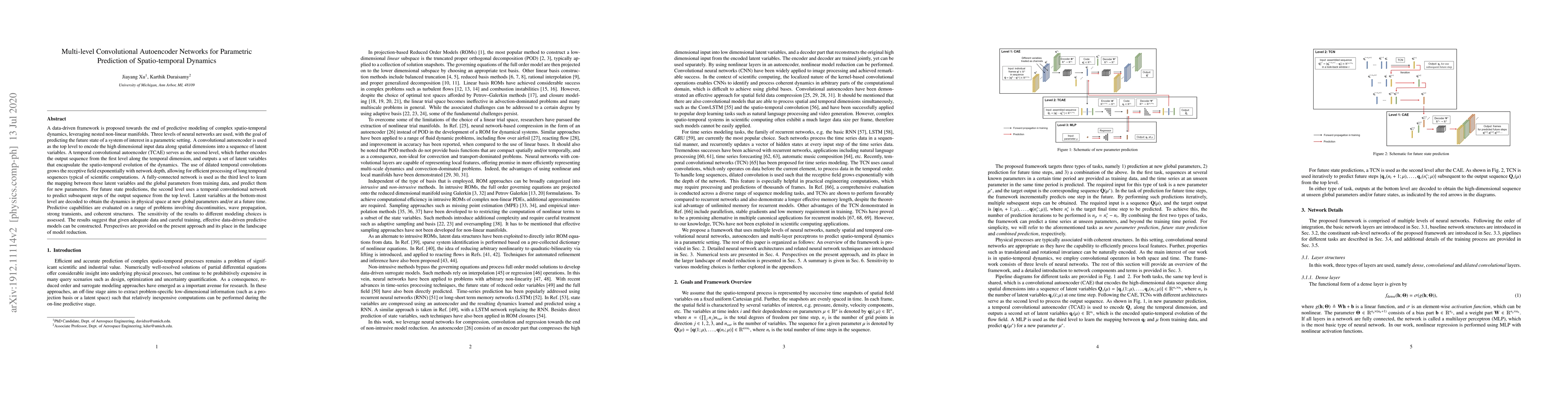 This paper proposes a multi-level convolutional autoencoder framework for predicting complex spatio-temporal dynamics. It uses nested neural networks, including a convolutional autoencoder, a temporal convolutional autoencoder, and a fully-connected network, to model and predict future states of systems in parametric settings. The approach demonstrates effective predictive capabilities across various scientific problems.