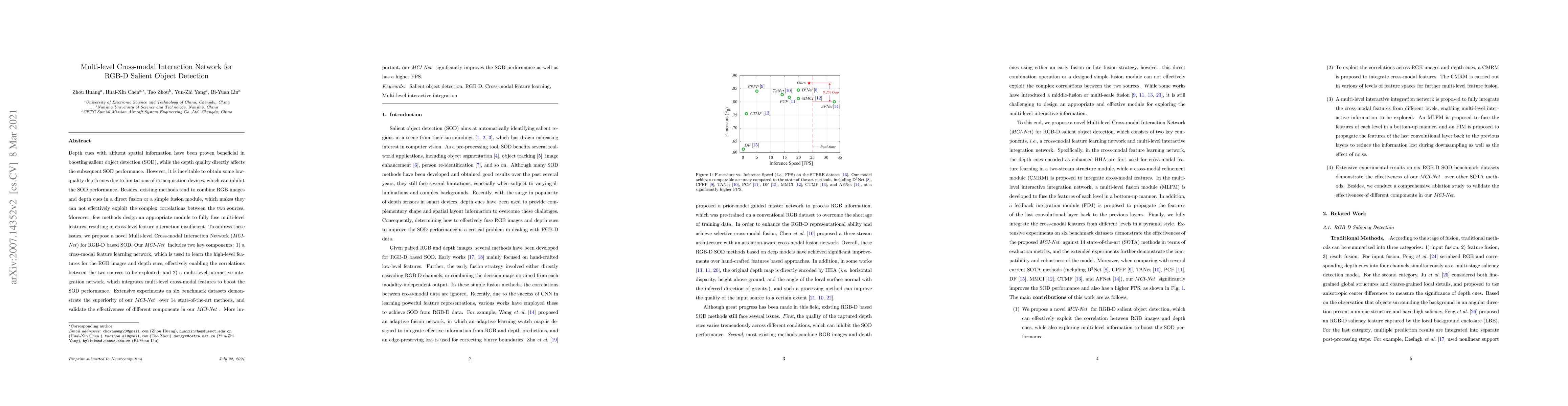 The paper proposes a Multi-level Cross-modal Interaction Network (MCINet) for RGB-D salient object detection, addressing limitations of low-quality depth cues and insufficient feature fusion. The MCINet includes a cross-modal feature learning network and a multi-level interactive integration network, achieving superior performance over 14 state-of-the-art methods on six benchmark datasets.