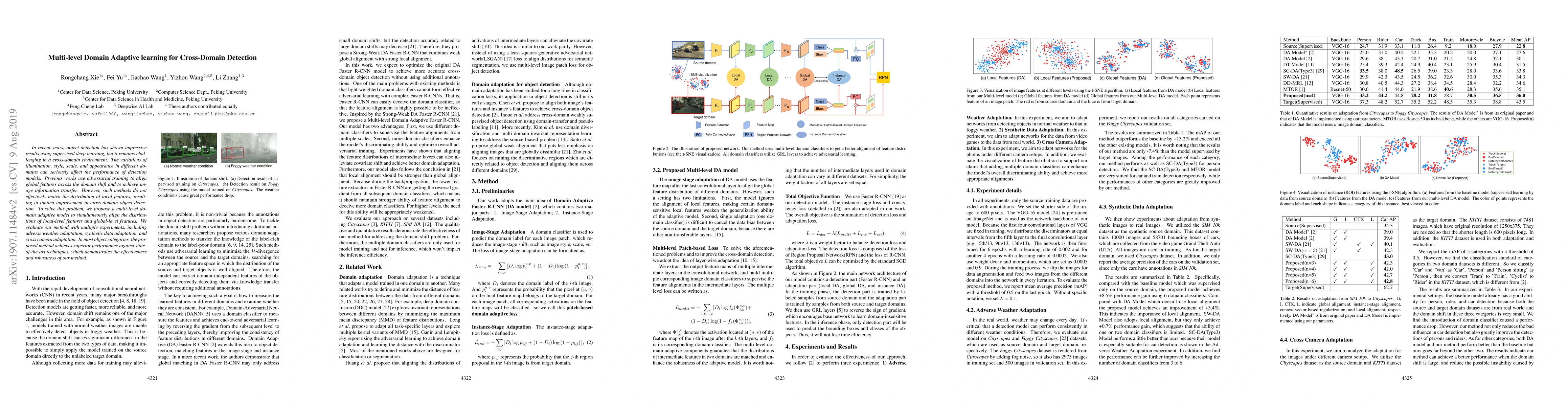The paper proposes a multi-level domain adaptive learning model to improve cross-domain object detection by aligning both local and global feature distributions, achieving superior performance across various adaptation scenarios compared to state-of-the-art methods.