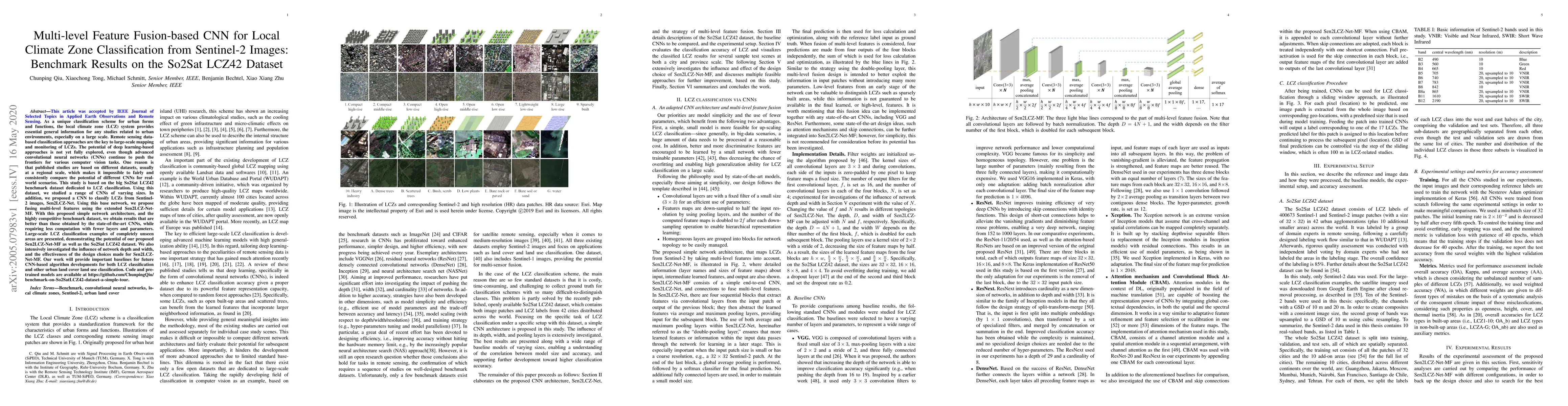 A new deep learning model called Sen2LCZ-Net-MF outperforms existing CNNs in local climate zone classification from Sentinel-2 images, using a competitive benchmark dataset with fewer layers and parameters.