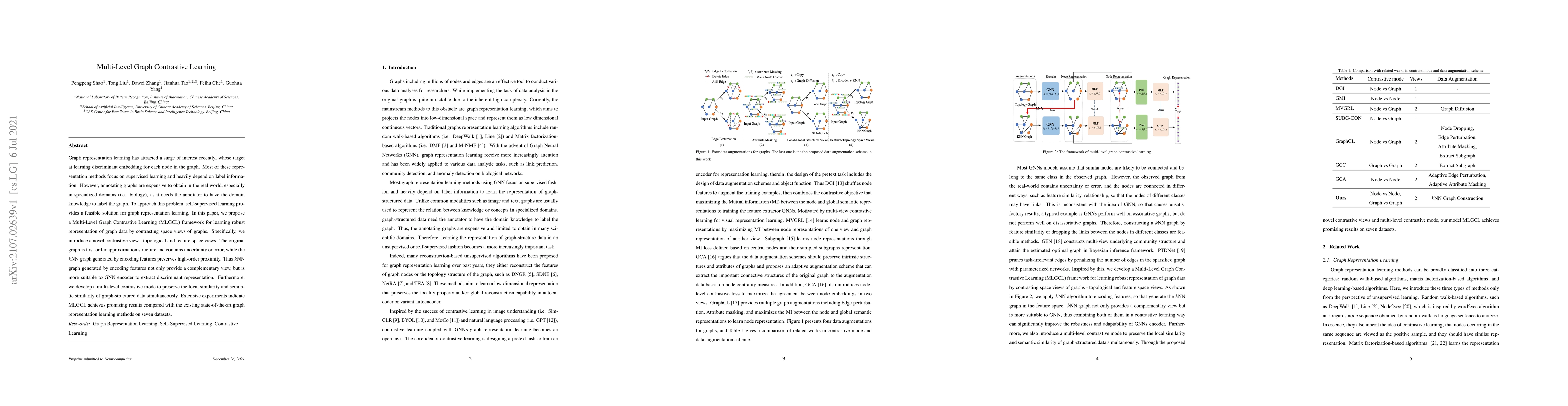 This paper proposes a Multi-Level Graph Contrastive Learning (MLGCL) framework to learn robust graph representations without relying on labels. It contrasts topological and feature space views of graphs, using a $k$NN graph to provide a complementary view for GNN encoders, and achieves state-of-the-art performance on seven datasets.