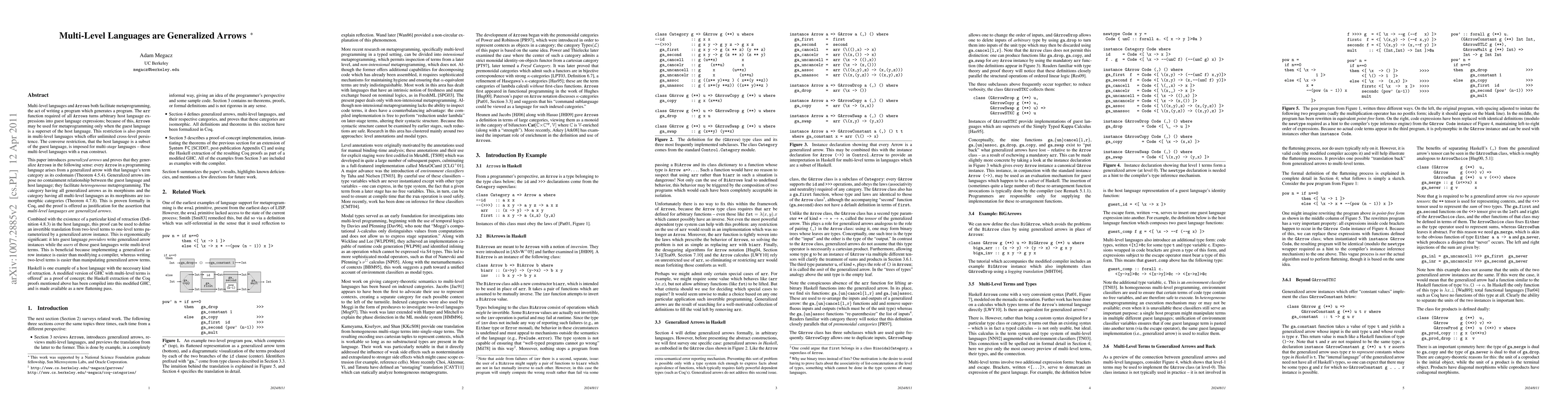Combined with the existence of a particular kind of retraction in the host language, this proof can be used to define an invertible translation from two-level terms to one-level terms parameterized by a generalized arrow instance. This is ergonomically significant: it lets guest language providers write generalized arrow instances while the users of those guest languages write multi-level terms. This is beneficial because implementing a generalized arrow instance is easier than modifying a compiler, whereas writing two-level terms is easier than manipulating generalized arrow terms.