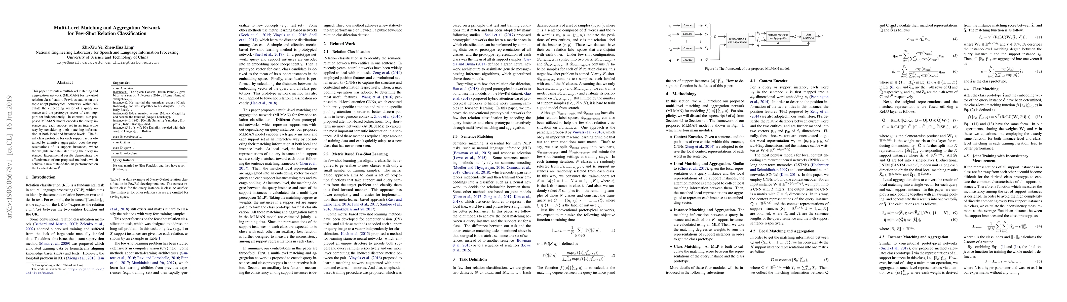 This paper presents a multi-level matching and aggregation network (MLMAN) for few-shot relation classification. Previous studies on this topic adopt prototypical networks, which calculate the embedding vector of a query instance and the prototype vector of each support set independently. In contrast, our proposed MLMAN model encodes the query instance and each support set in an interactive way by considering their matching information at both local and instance levels. The final class prototype for each support set is obtained by attentive aggregation over the representations of its support instances, where the weights are calculated using the query instance. Experimental results demonstrate the effectiveness of our proposed methods, which achieve a new state-of-the-art performance on the FewRel dataset.