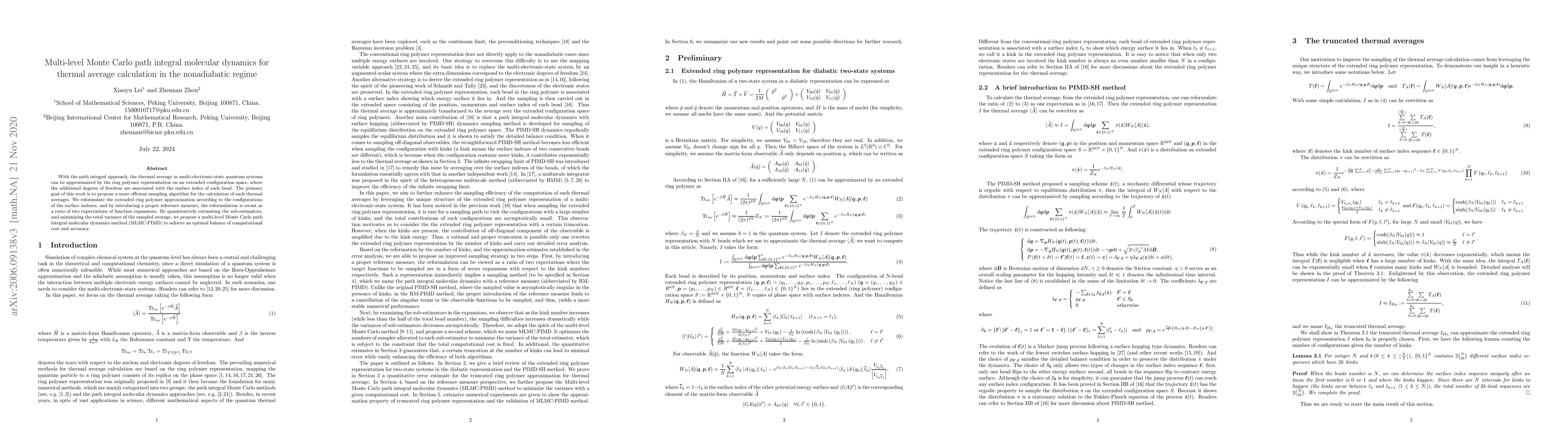 This paper proposes a multi-level Monte Carlo path integral molecular dynamics (MLMC-PIMD) method to efficiently calculate thermal averages in multi-electronic-state quantum systems. The approach reformulates the extended ring polymer approximation and minimizes the total variance to achieve an optimal balance between computational cost and accuracy.