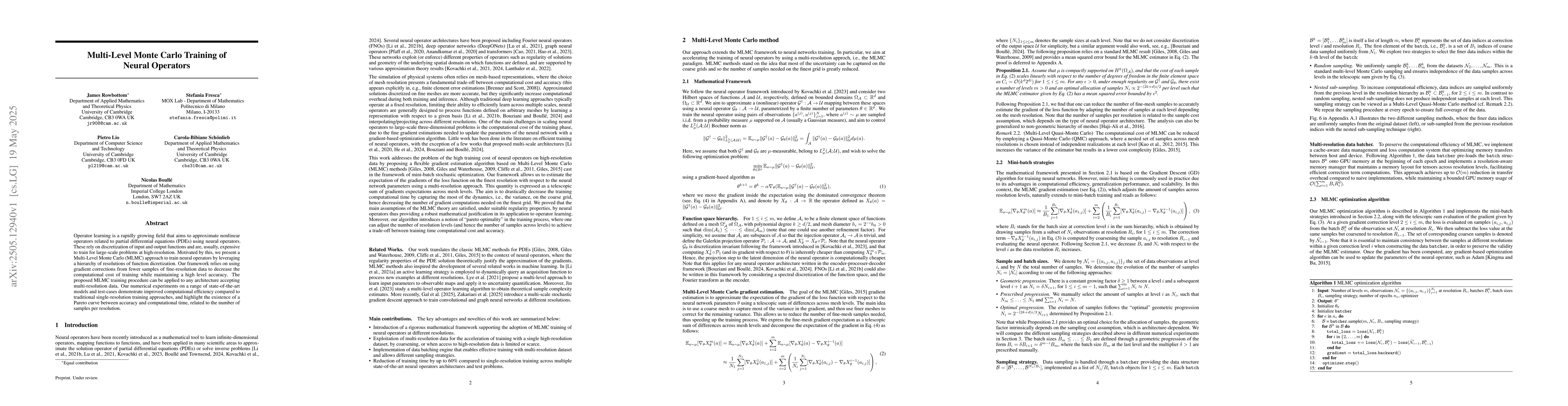 This work introduces the application of the MLMC method to neural operator training, distinguishing it from traditional single-resolution training approaches and offering a novel balance between computational cost and accuracy.
