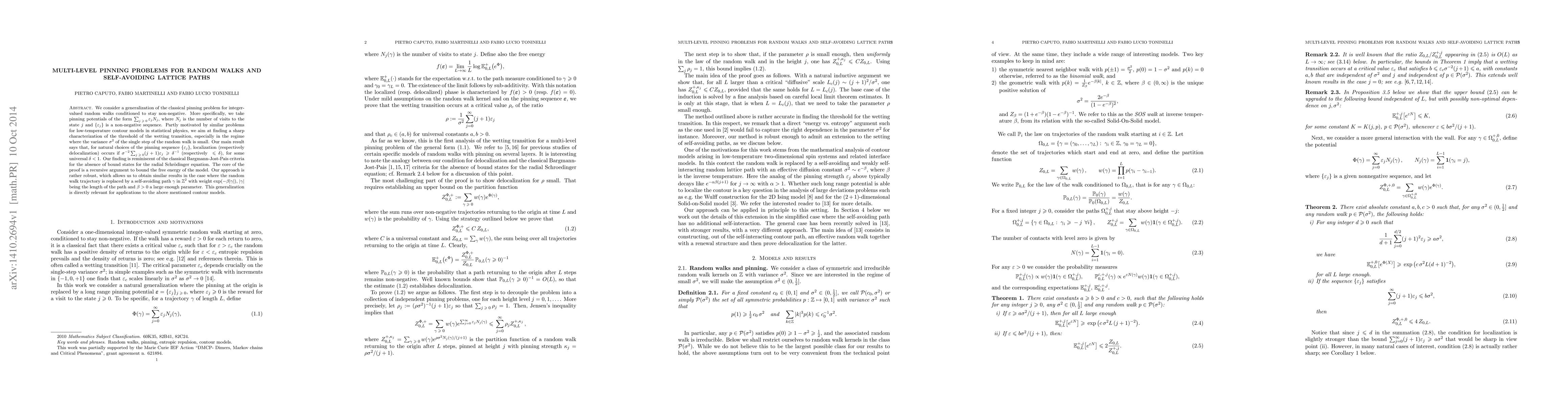 We consider a generalization of the classical pinning problem for integer-valued random walks conditioned to stay non-negative. More specifically, we take pinning potentials of the form $\sum_{j\geq 0}\epsilon_j N_j$, where $N_j$ is the number of visits to the state $j$ and $\{\epsilon_j\}$ is a non-negative sequence. Partly motivated by similar problems for low-temperature contour models in statistical physics, we aim at finding a sharp characterization of the threshold of the wetting transition, especially in the regime where the variance $\sigma^2$ of the single step of the random walk is small. Our main result says that, for natural choices of the pinning sequence $\{\epsilon_j\}$, localization (respectively delocalization) occurs if $\sigma^{-2}\sum_{ j\geq0}(j+1)\epsilon_j\geq\delta^{-1}$ (respectively $\le \delta$), for some universal $\delta <1$. Our finding is reminiscent of the classical Bargmann-Jost-Pais criteria for the absence of bound states for the radial Schr\"odinger equation. The core of the proof is a recursive argument to bound the free energy of the model. Our approach is rather robust, which allows us to obtain similar results in the case where the random walk trajectory is replaced by a self-avoiding path $\gamma$ in $\mathbb Z^2$ with weight $\exp(-\beta |\gamma|)$, $|\gamma|$ being the length of the path and $\beta>0$ a large enough parameter. This generalization is directly relevant for applications to the above mentioned contour models.