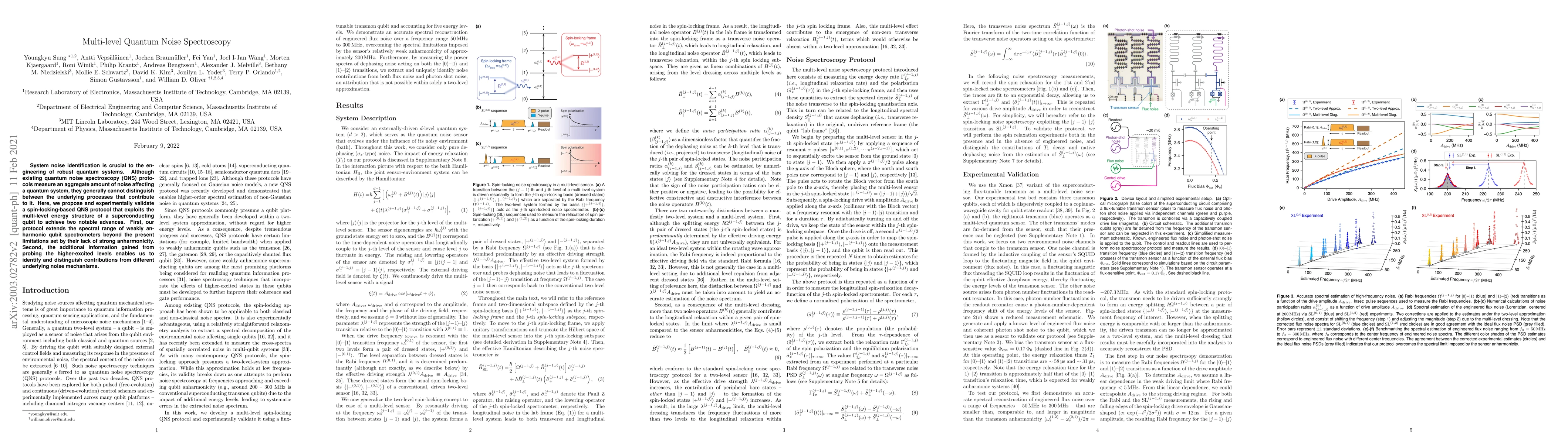 System noise identification is crucial to the engineering of robust quantum systems. Although existing quantum noise spectroscopy (QNS) protocols measure an aggregate amount of noise affecting a quantum system, they generally cannot distinguish between the underlying processes that contribute to it. Here, we propose and experimentally validate a spin-locking-based QNS protocol that exploits the multi-level energy structure of a superconducting qubit to achieve two notable advances. First, our protocol extends the spectral range of weakly anharmonic qubit spectrometers beyond the present limitations set by their lack of strong anharmonicity. Second, the additional information gained from probing the higher-excited levels enables us to identify and distinguish contributions from different underlying noise mechanisms.