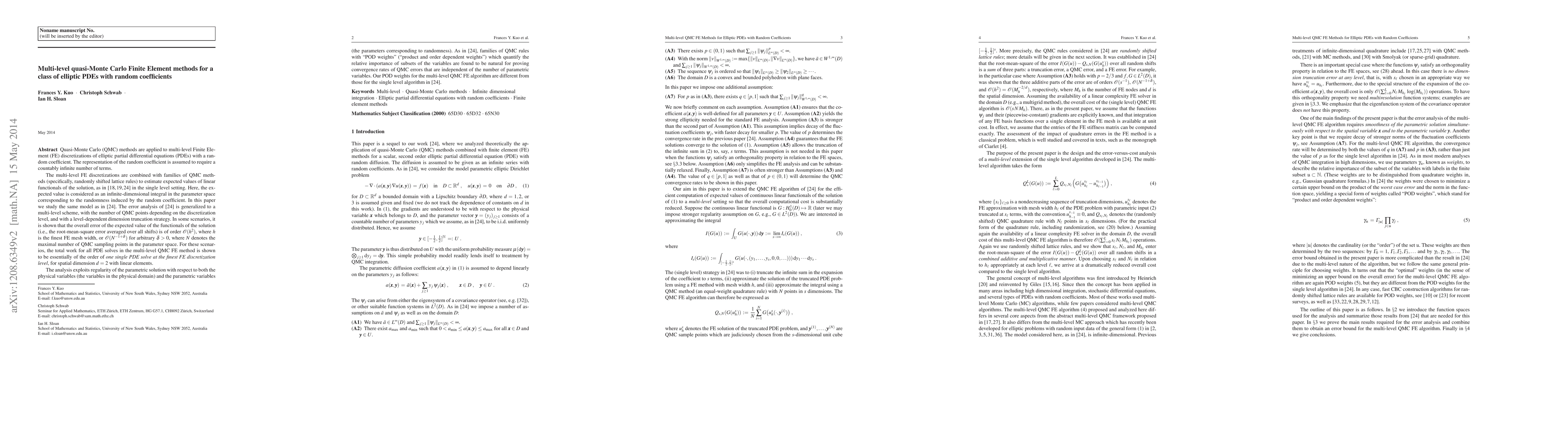 This paper explores multi-level quasi-Monte Carlo finite element methods for solving elliptic PDEs with random coefficients, achieving $\mathcal{O}(h^2)$ or $\mathcal{O}(N^{-1+\delta})$ error rates. The method leverages a multi-level algorithm with adaptive QMC points and dimension truncation, demonstrating efficient convergence independent of the number of parametric variables.