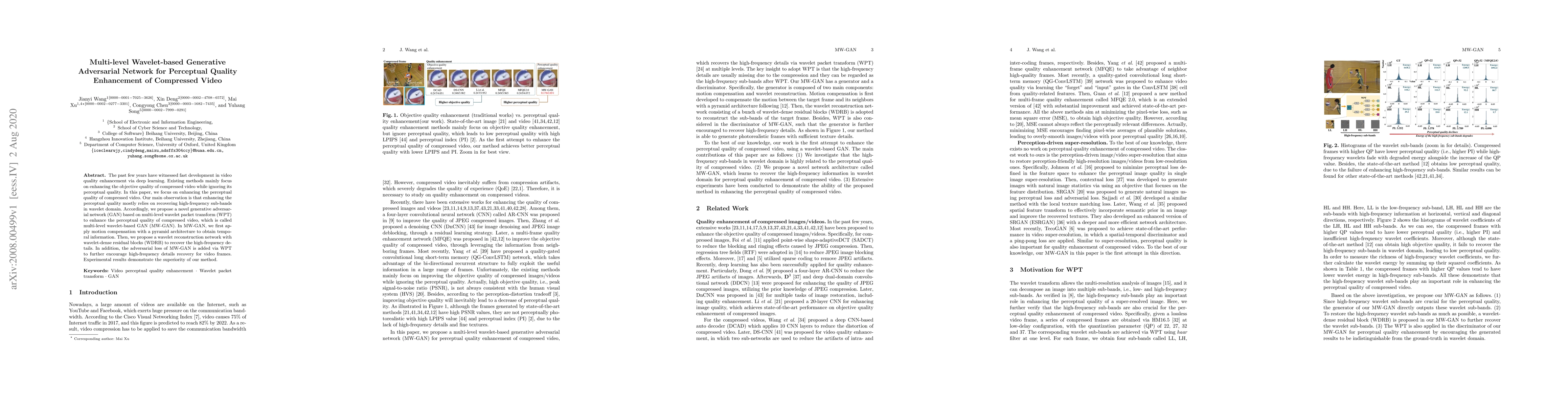 This paper proposes a multi-level wavelet-based GAN (MW-GAN) to enhance the perceptual quality of compressed video by recovering high-frequency details using wavelet reconstruction and adversarial loss. Experimental results show the method's effectiveness in improving perceptual quality.