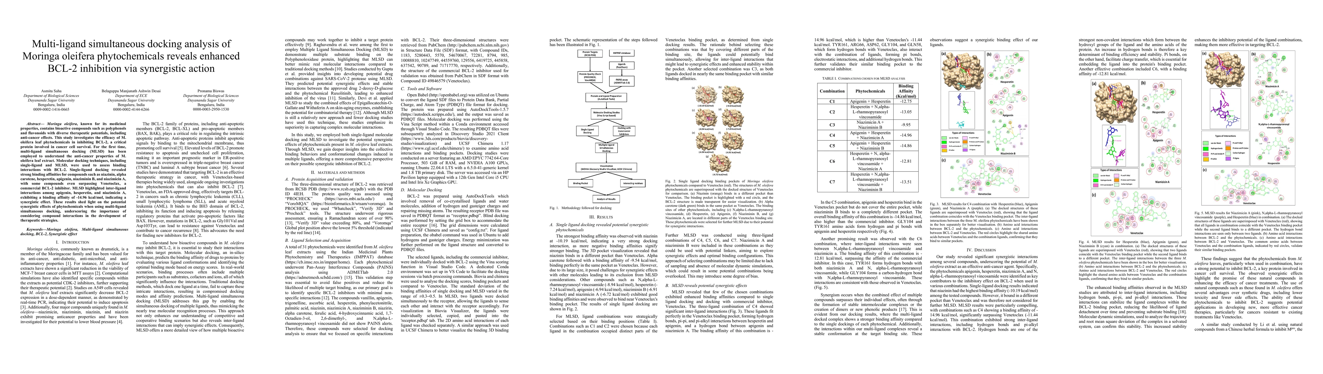 The application of multi-ligand simultaneous docking (MLSD) to analyze the synergistic action of Moringa oleifera phytochemicals against BCL-2 protein.