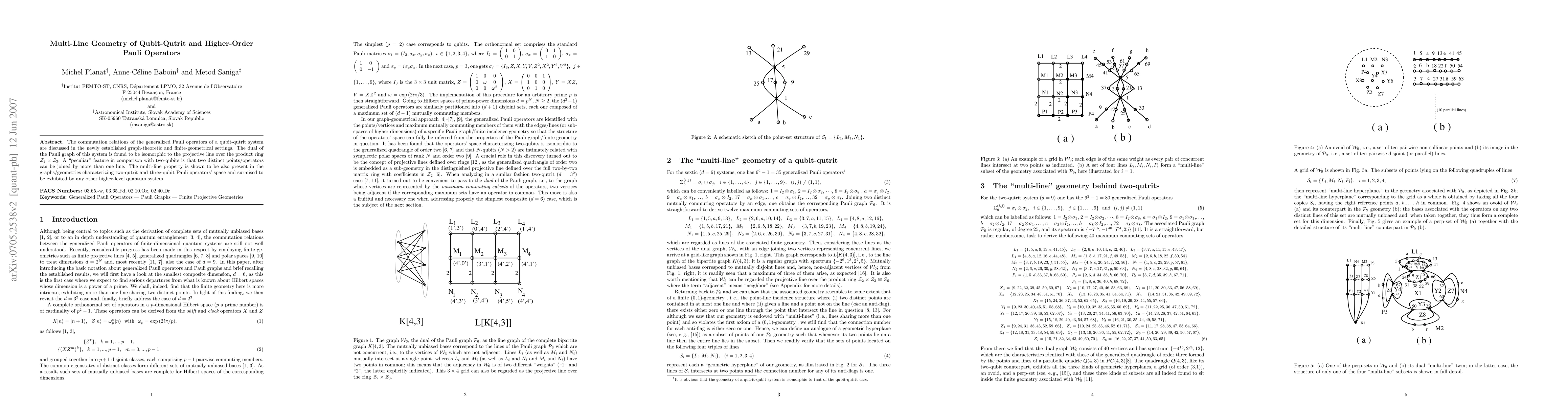 Researchers explored the commutation relations of qubit-qutrit Pauli operators, discovering a unique feature where multiple lines connect distinct points/operators, found in higher-order quantum systems.
