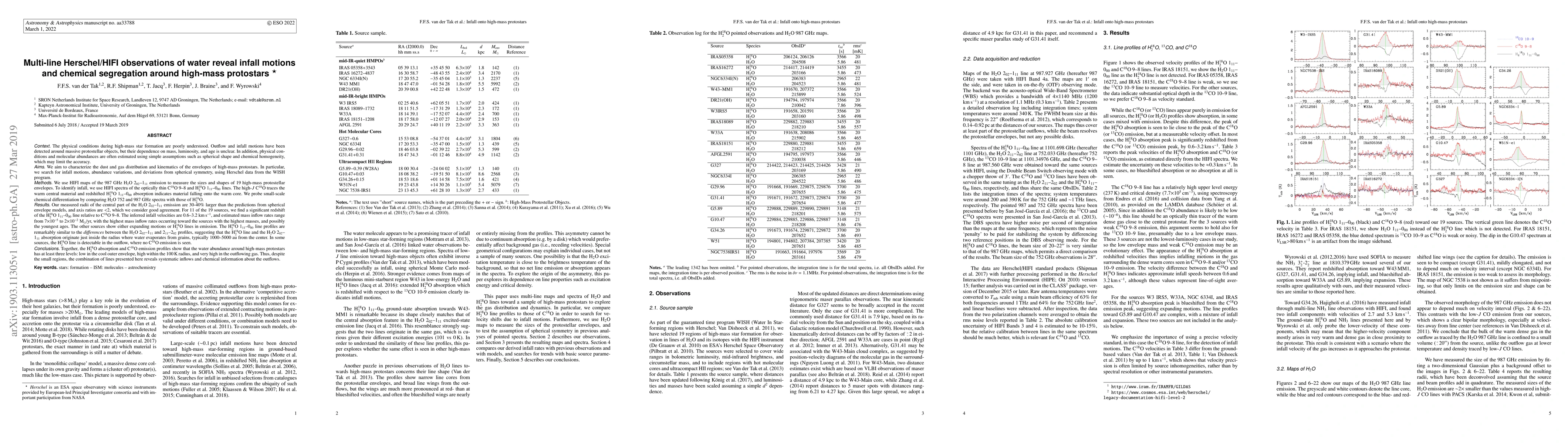 This study uses Herschel/HIFI observations to analyze water emission around high-mass protostars, identifying infall motions and chemical segregation. Infall is detected via redshifted H2O-18 absorption against C18O emission, with inferred velocities ranging from 0.6-3.2 km/s. The research reveals a complex water abundance profile with distinct levels in the cool outer envelope, warm inner region, and outflowing gas, offering insights into protostellar evolution.