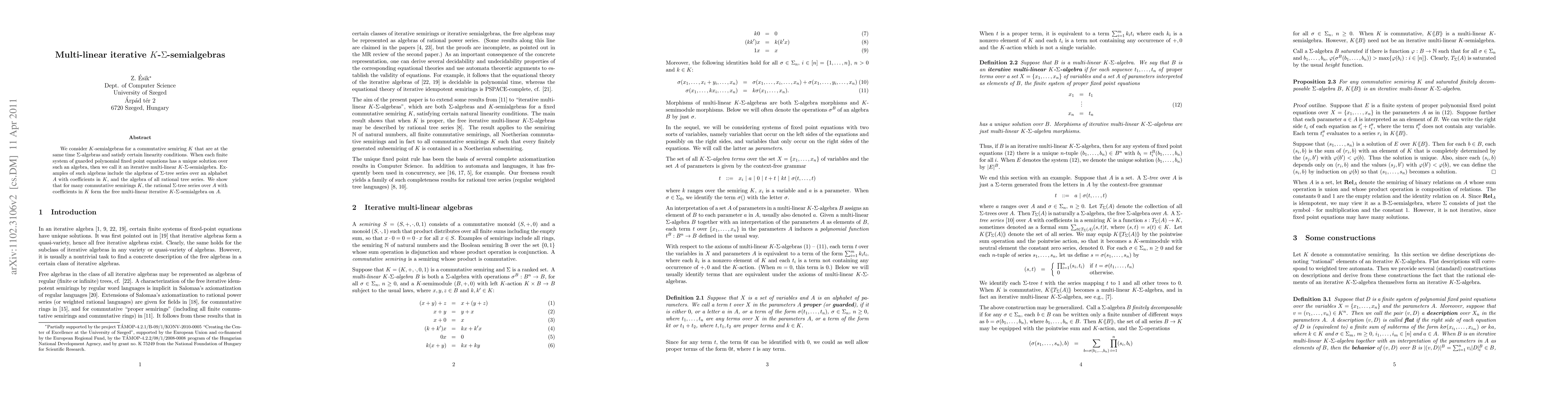 This paper explores $K$-semialgebras that are also $\Sigma$-algebras and satisfy linearity conditions, termed iterative multi-linear $K$-$\Sigma$-semialgebras. It demonstrates that for many commutative semirings $K$, the rational $\Sigma$-tree series form the free multi-linear iterative $K$-$\Sigma$-semialgebra.