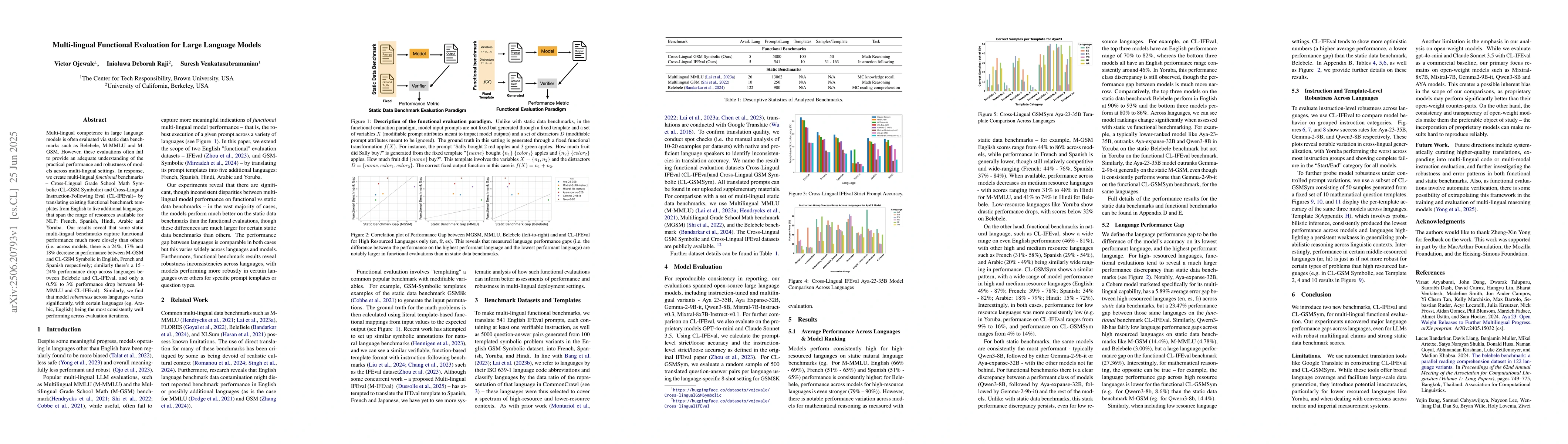 Multi-lingual competence in large language models is often evaluated via static data benchmarks such as Belebele, M-MMLU and M-GSM. However, these evaluations often fail to provide an adequate understanding of the practical performance and robustness of models across multi-lingual settings. In response, we create multi-lingual functional benchmarks -- Cross-Lingual Grade School Math Symbolic (CL-GSM Symbolic) and Cross-Lingual Instruction-Following Eval (CL-IFEval)-- by translating existing functional benchmark templates from English to five additional languages that span the range of resources available for NLP: French, Spanish, Hindi, Arabic and Yoruba. Our results reveal that some static multi-lingual benchmarks capture functional performance much more closely than others (i.e. across models, there is a 24%, 17% and 18% decrease in performance between M-GSM and CL-GSM Symbolic in English, French and Spanish respectively; similarly there's a 15 - 24% performance drop across languages between Belebele and CL-IFEval, and only a 0.5% to 3% performance drop between M-MMLU and CL-IFEval). Similarly, we find that model robustness across languages varies significantly, with certain languages (eg. Arabic, English) being the most consistently well performing across evaluation iterations.
