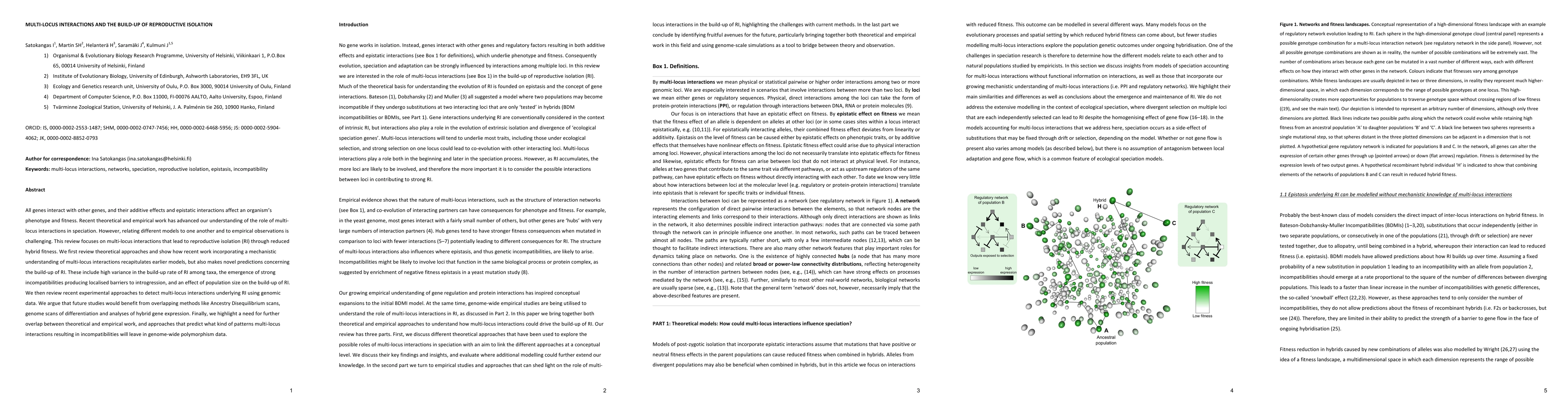 This review explores how multi-locus interactions contribute to reproductive isolation in species, revealing that it happens through reduced hybrid fitness, with varying build-up rates among taxa and influenced by population size.