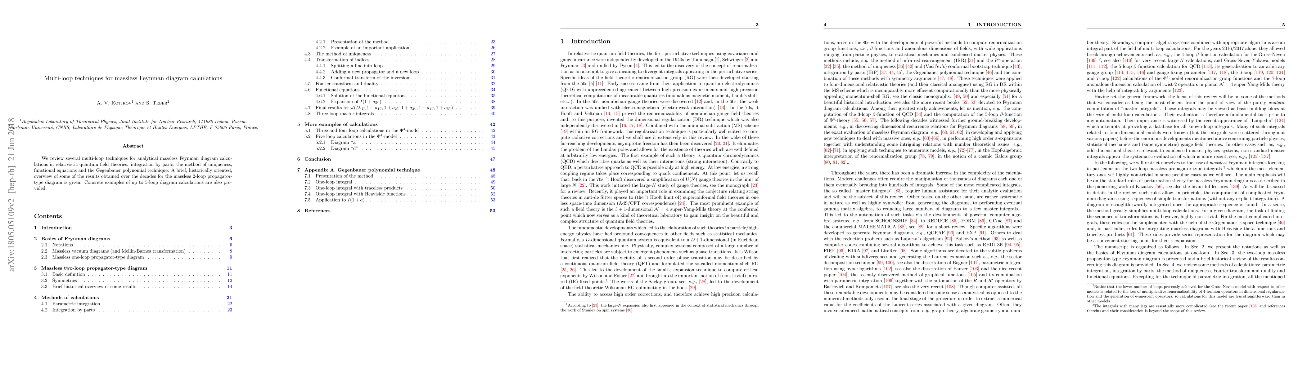 This paper reviews advanced multi-loop techniques for analytically computing massless Feynman diagrams in quantum field theories, including integration by parts, the method of uniqueness, functional equations, and the Gegenbauer polynomial technique. It also provides examples of calculations up to 5-loops and a historical overview of results for 2-loop propagator-type diagrams.