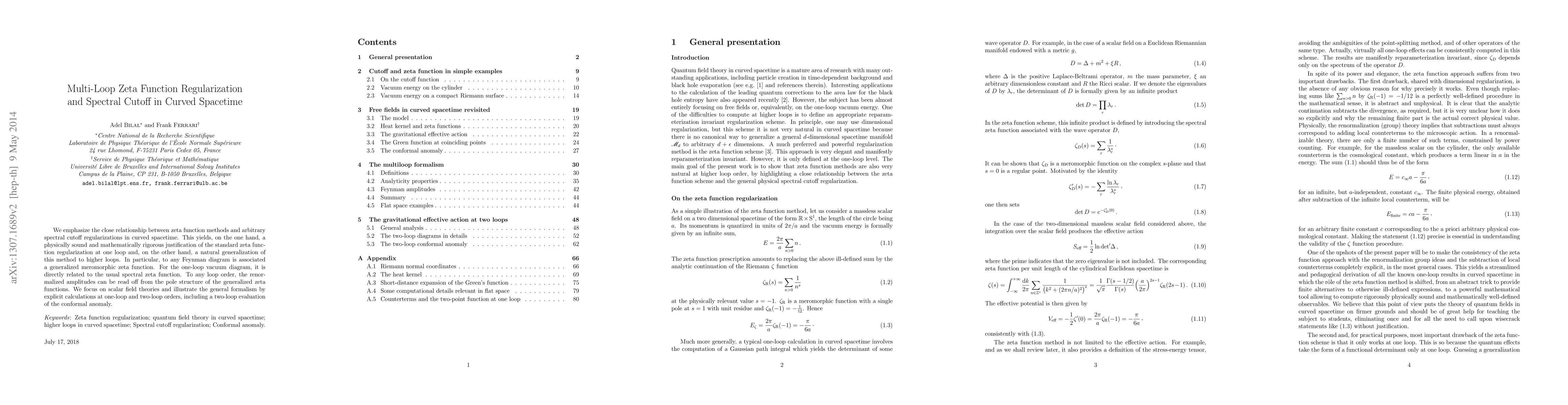 This paper explores the connection between zeta function regularization and spectral cutoff methods in curved spacetime, providing a rigorous justification for zeta function regularization at one loop and extending it to higher loops. The authors demonstrate the formalism through scalar field theory calculations at one-loop and two-loop levels.