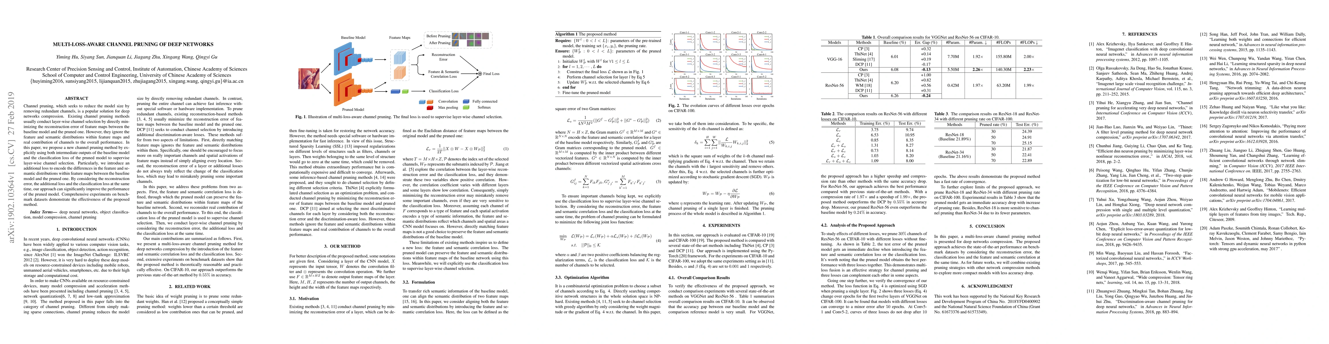 A new channel pruning method improves deep network performance by using both feature maps and classification loss to supervise layer-wise channel selection, leading to significant model size reduction without sacrificing accuracy.