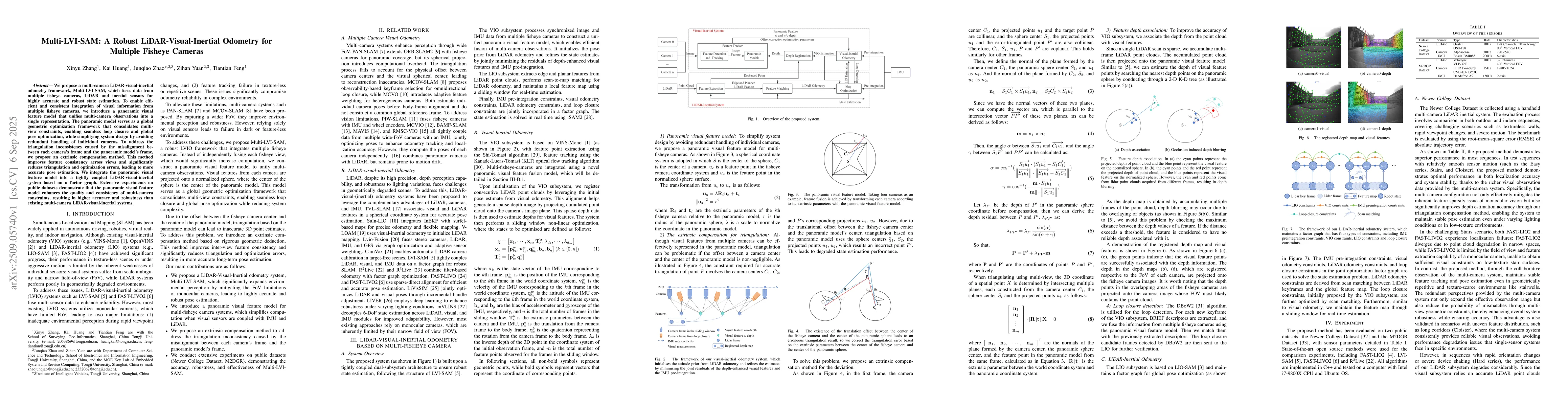 We propose a multi-camera LiDAR-visual-inertial odometry framework, Multi-LVI-SAM, which fuses data from multiple fisheye cameras, LiDAR and inertial sensors for highly accurate and robust state estimation. To enable efficient and consistent integration of visual information from multiple fisheye cameras, we introduce a panoramic visual feature model that unifies multi-camera observations into a single representation. The panoramic model serves as a global geometric optimization framework that consolidates multi-view constraints, enabling seamless loop closure and global pose optimization, while simplifying system design by avoiding redundant handling of individual cameras. To address the triangulation inconsistency caused by the misalignment between each camera's frame and the panoramic model's frame, we propose an extrinsic compensation method. This method improves feature consistency across views and significantly reduces triangulation and optimization errors, leading to more accurate pose estimation. We integrate the panoramic visual feature model into a tightly coupled LiDAR-visual-inertial system based on a factor graph. Extensive experiments on public datasets demonstrate that the panoramic visual feature model enhances the quality and consistency of multi-camera constraints, resulting in higher accuracy and robustness than existing multi-camera LiDAR-visual-inertial systems.