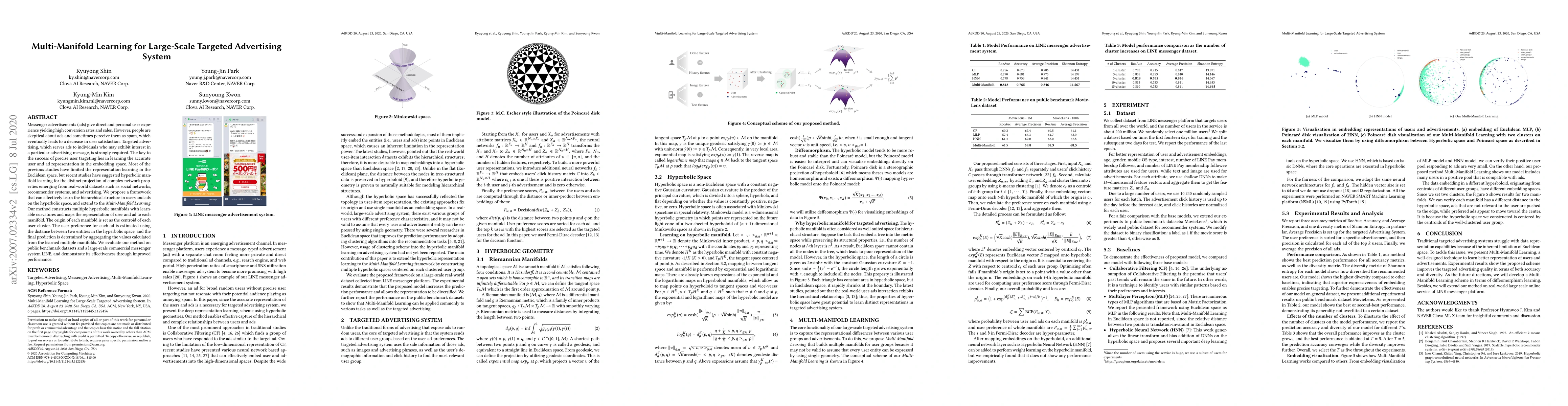Their approach aggregates multiple learnable manifolds to estimate user preferences and predict ad effectiveness, demonstrating improved performance in benchmark datasets and real-world applications.