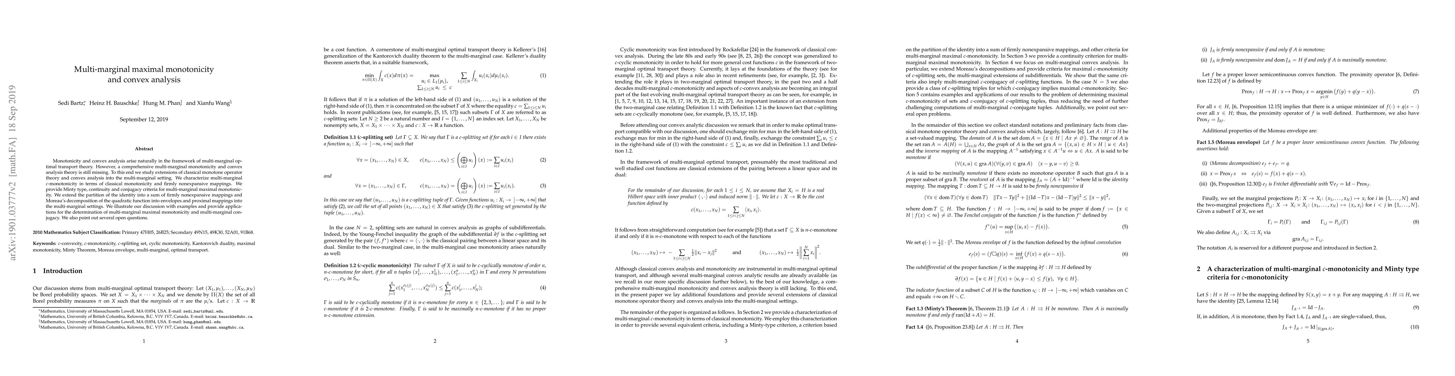 This paper extends classical monotone operator theory and convex analysis to multi-marginal settings, providing criteria for multi-marginal maximal monotonicity and conjugacy, and illustrating these with examples and applications. It also highlights open questions for future research.