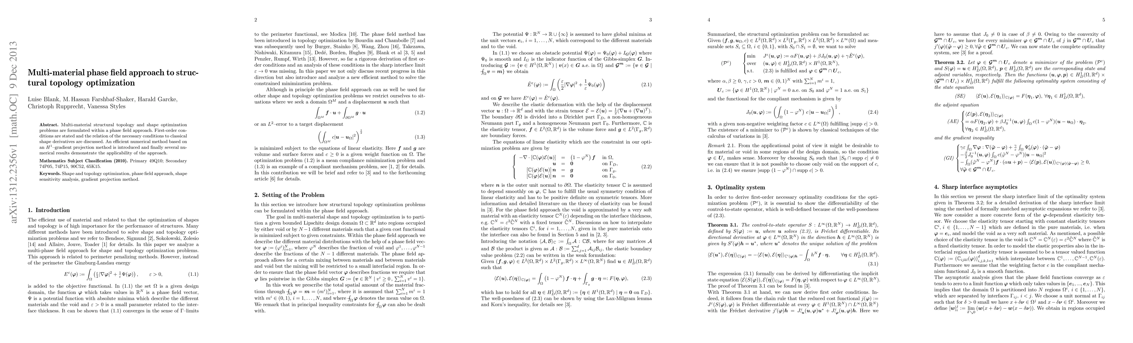 This paper proposes a multi-material phase field method for structural topology and shape optimization, establishing first-order conditions and discussing their relation to classical shape derivatives. An efficient numerical gradient projection method is introduced, and numerical results validate the approach's effectiveness.