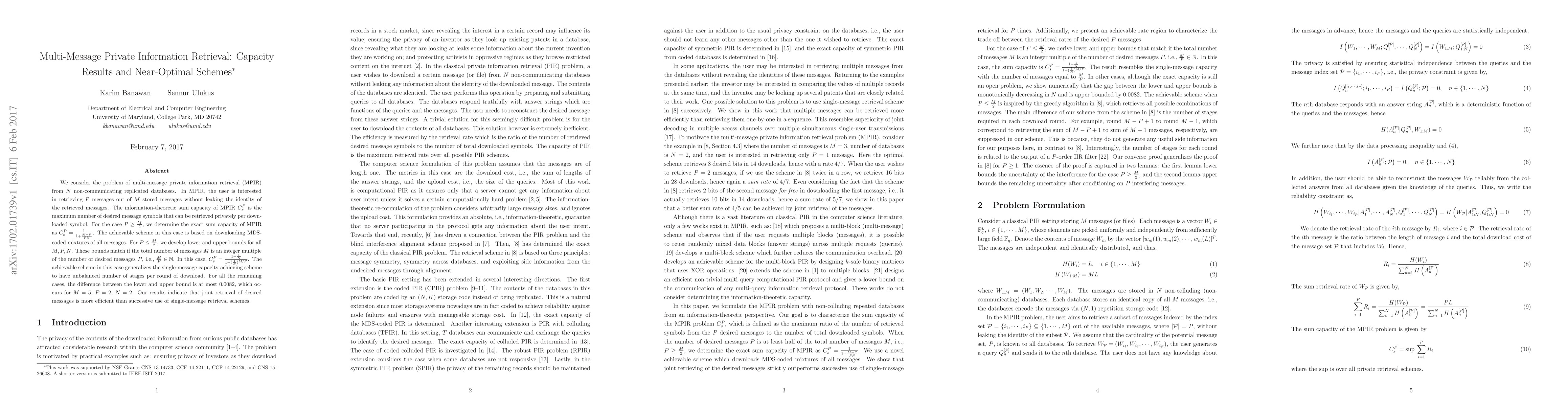 The paper presents near-optimal schemes for MPIR, utilizing MDS codes and IIR filters, and derives exact capacity expressions for different message retrieval scenarios.