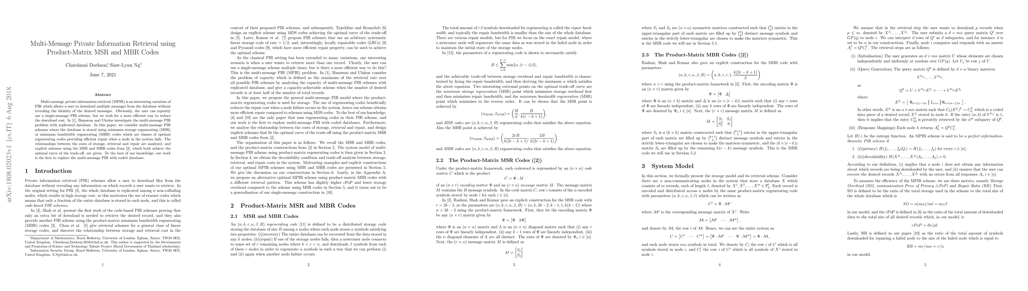 This paper explores multi-message private information retrieval (MPIR) using minimum storage regenerating (MSR) and minimum bandwidth regenerating (MBR) codes, aiming to efficiently retrieve multiple messages without revealing their identities. It provides explicit schemes achieving optimal trade-offs between storage, retrieval, and repair costs.