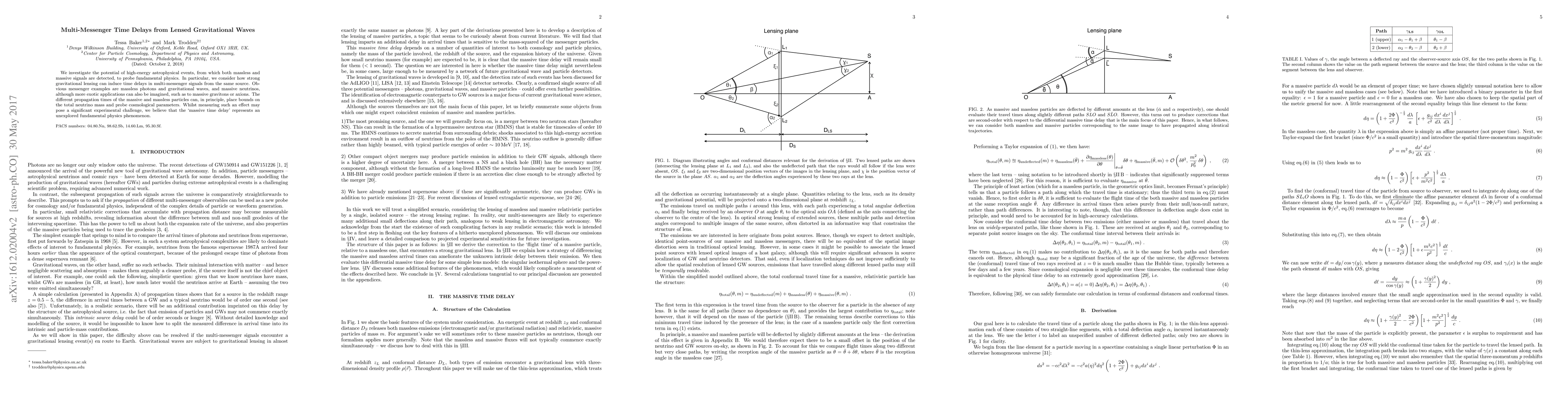 We investigate the potential of high-energy astrophysical events, from which both massless and massive signals are detected, to probe fundamental physics. In particular, we consider how strong gravitational lensing can induce time delays in multi-messenger signals originating from the same source. Obvious messenger examples are massless photons and gravitational waves, and massive neutrinos, although more exotic applications can also be imagined, such as to massive gravitons or axions. The different propagation times of the massive and massless particles can, in principle, place bounds on the total neutrino mass and probe cosmological parameters. Whilst measuring such an effect may pose a significant experimental challenge, we believe that the `massive time delay' represents an unexplored fundamental physics phenomenon.