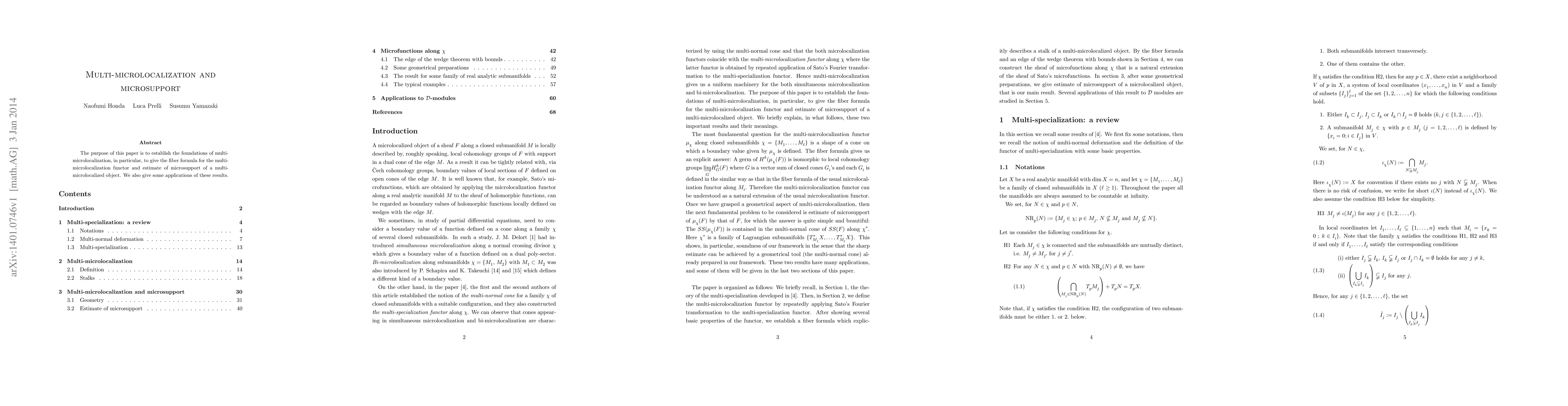 This paper lays the groundwork for multi-microlocalization, providing a fiber formula for its functor and an estimation of the microsupport of multi-microlocalized objects, along with relevant applications.