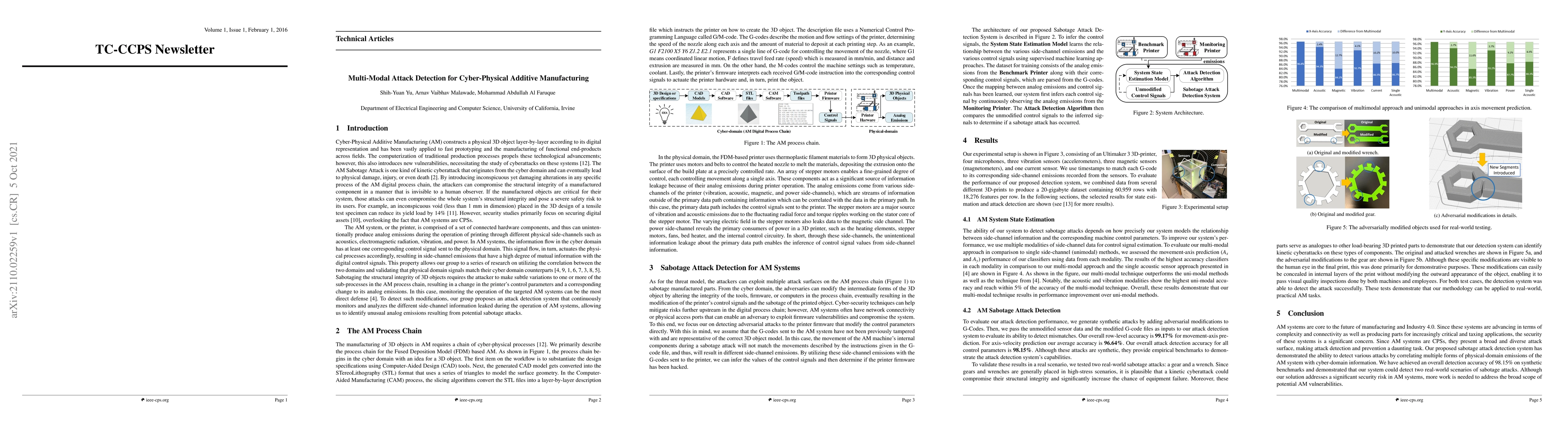Cyber-Physical Additive Manufacturing (AM) constructs a physical 3D object layer-by-layer according to its digital representation and has been vastly applied to fast prototyping and the manufacturing of functional end-products across fields. The computerization of traditional production processes propels these technological advancements; however, this also introduces new vulnerabilities, necessitating the study of cyberattacks on these systems. The AM Sabotage Attack is one kind of kinetic cyberattack that originates from the cyber domain and can eventually lead to physical damage, injury, or even death. By introducing inconspicuous yet damaging alterations in any specific process of the AM digital process chain, the attackers can compromise the structural integrity of a manufactured component in a manner that is invisible to a human observer. If the manufactured objects are critical for their system, those attacks can even compromise the whole system's structural integrity and pose a severe safety risk to its users. For example, an inconspicuous void (less than 1 mm in dimension) placed in the 3D design of a tensile test specimen can reduce its yield load by 14%. However, security studies primarily focus on securing digital assets, overlooking the fact that AM systems are CPSs.