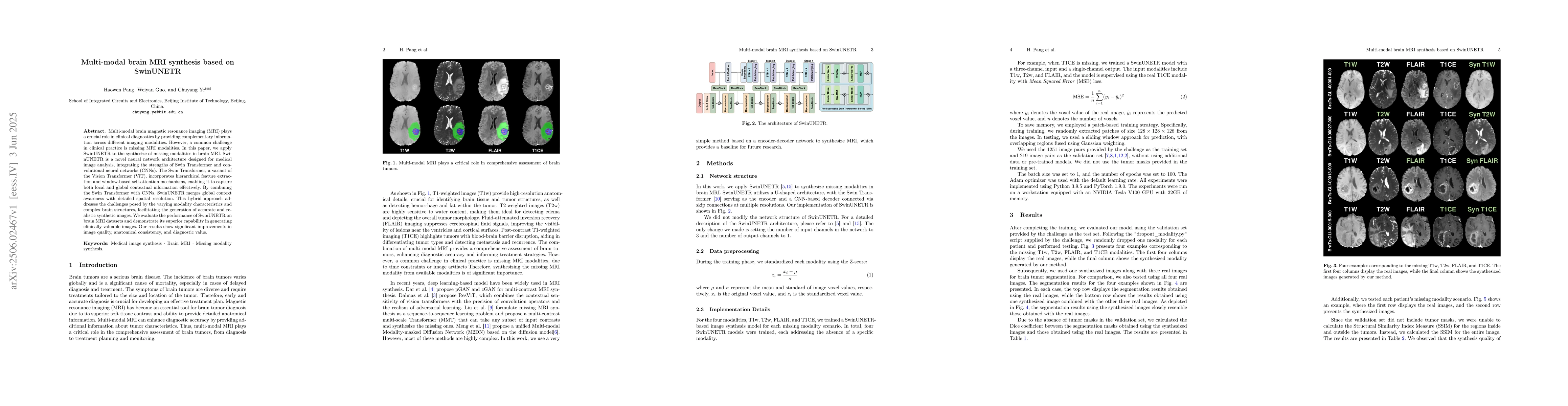 The main technical contribution is the development and application of SwinUNETR, a hybrid neural network architecture that effectively integrates Swin Transformer and CNNs for multi-modal brain MRI synthesis.