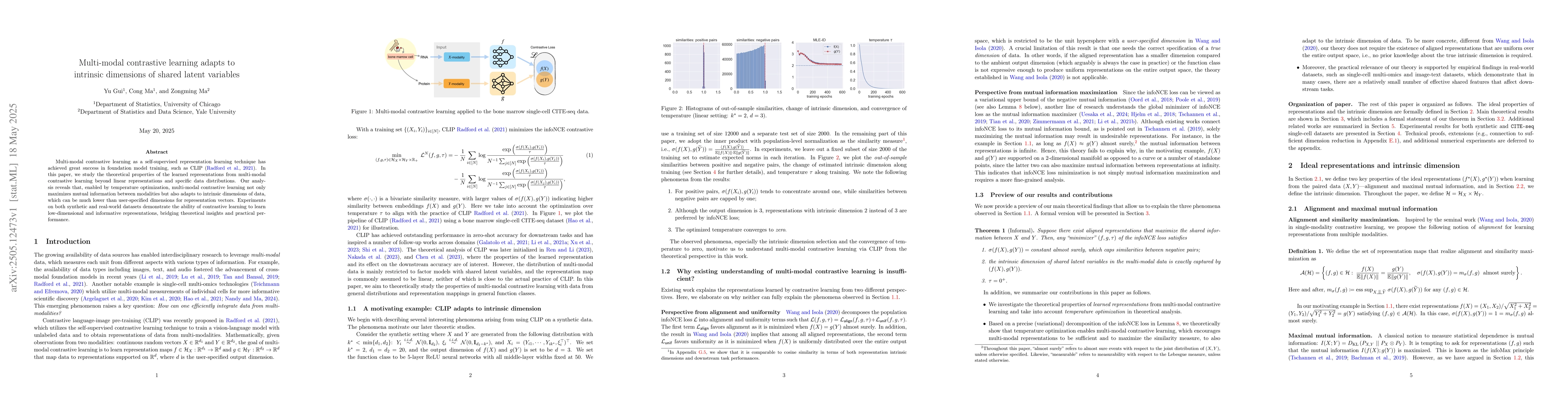 The paper reveals that multi-modal contrastive learning adapts to intrinsic dimensions of shared latent variables, providing a theoretical understanding of its effectiveness.
